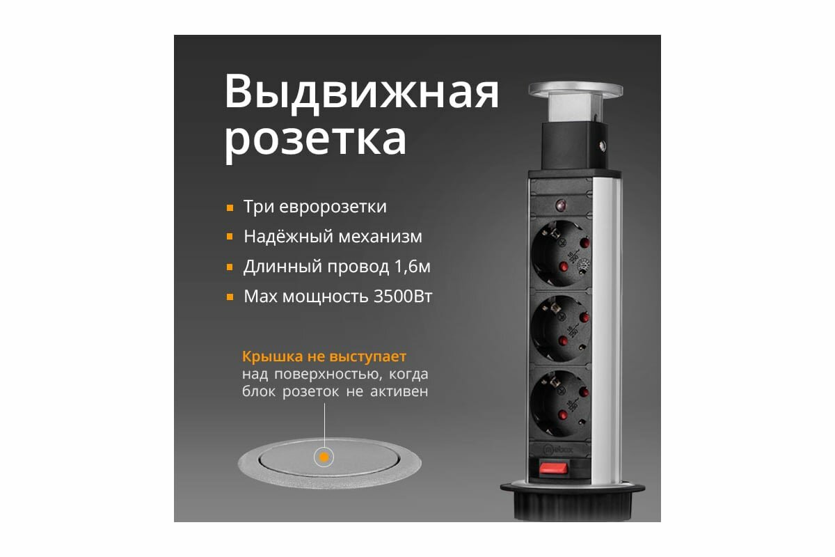 Выдвижная розетка Мебакс на 3 розетки, d 60 мм информация: