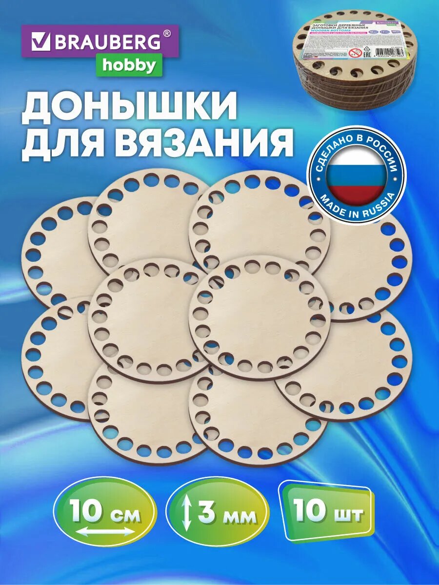 Донышки деревянные для вязания круглые, 10 штук, диаметр 10 см, BRAUBERG HOBBY, 665316 (665316) информация: