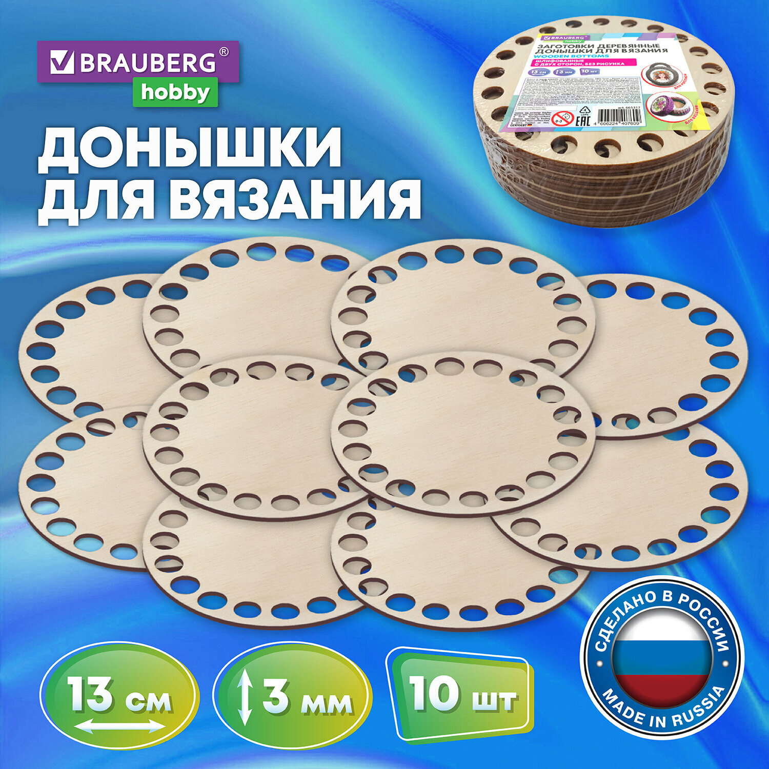 Донышки деревянные для вязания круглые, 10 штук, диаметр 13 см, BRAUBERG HOBBY, 665317 (арт. 665317) 437 ₽
