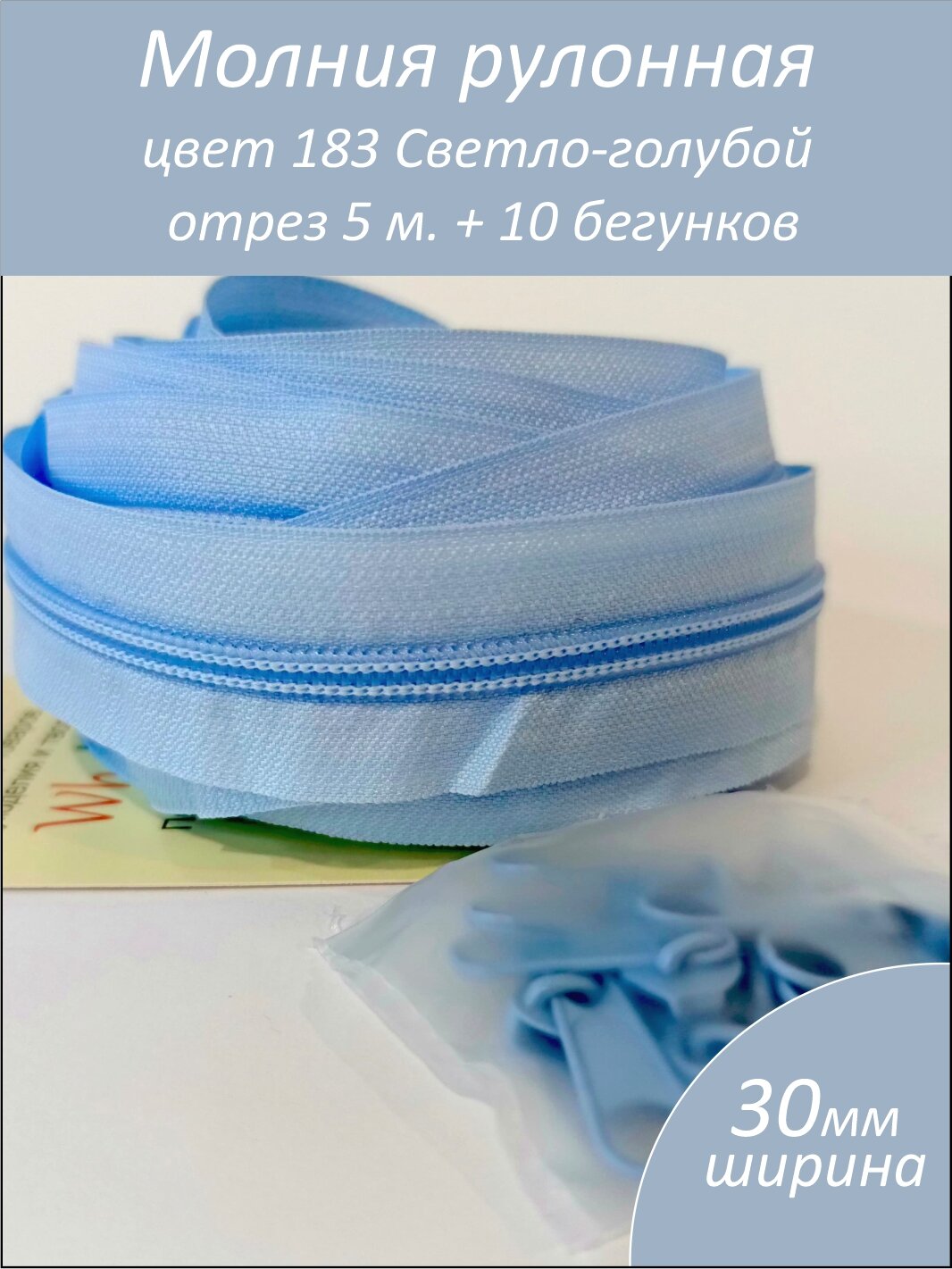 Молния рулонная с бегунками WHobby, № 5, 5м, светло-голубая информация: