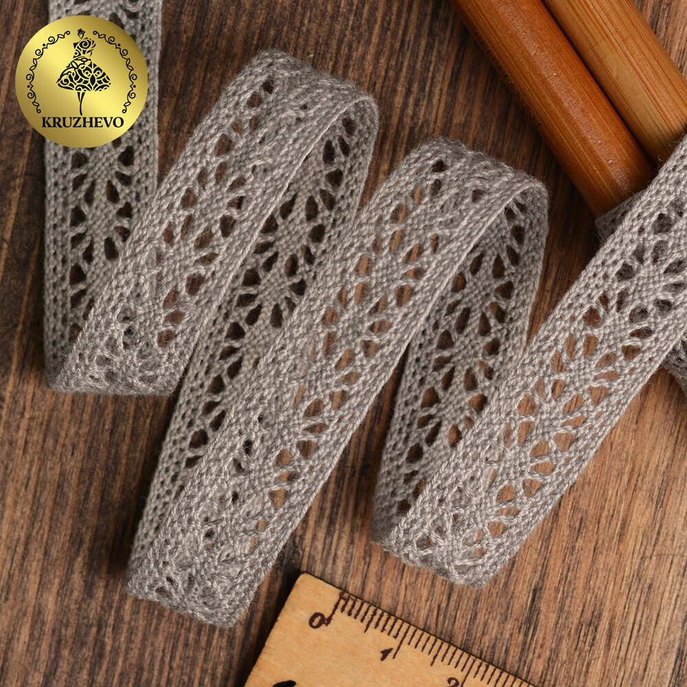 Тесьма вязаная KRUZHEVO 15мм TBY.15.01.099 кружево хлопок цв.22 серый лен уп.2,5 м