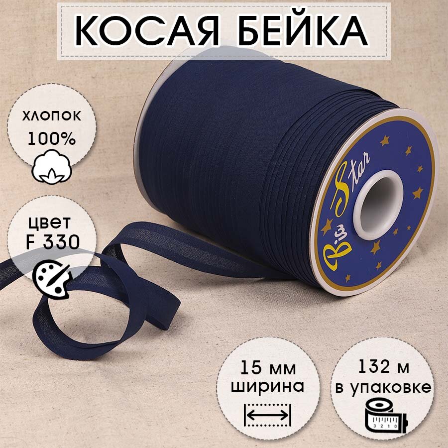 Отзывы на Косая бейка хлопок (хлопковая бейка для шитья) шир.15мм цв.темно-синий упак.132 м
