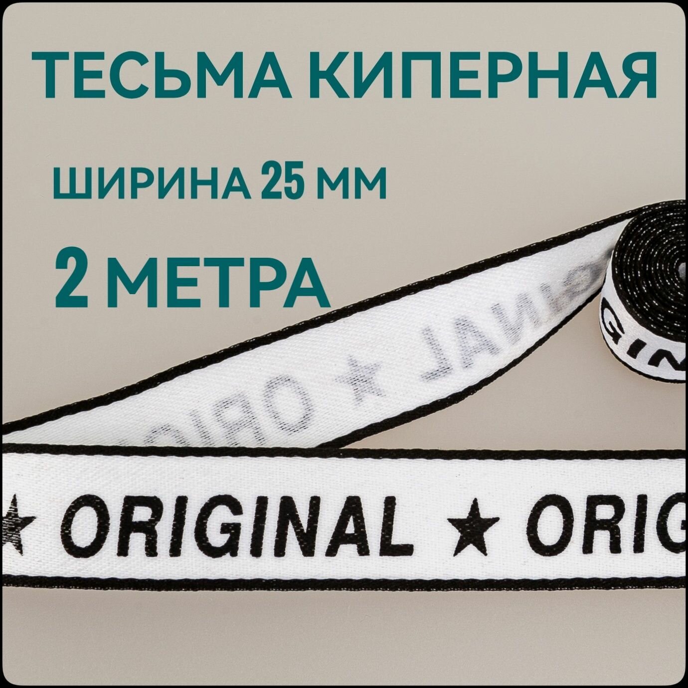 Тесьма /лента киперная принт чёрный на белом декоративная лампасная ш.2.5 см, в упаковке 2 м, для шитья, творчества и рукоделия. информация: