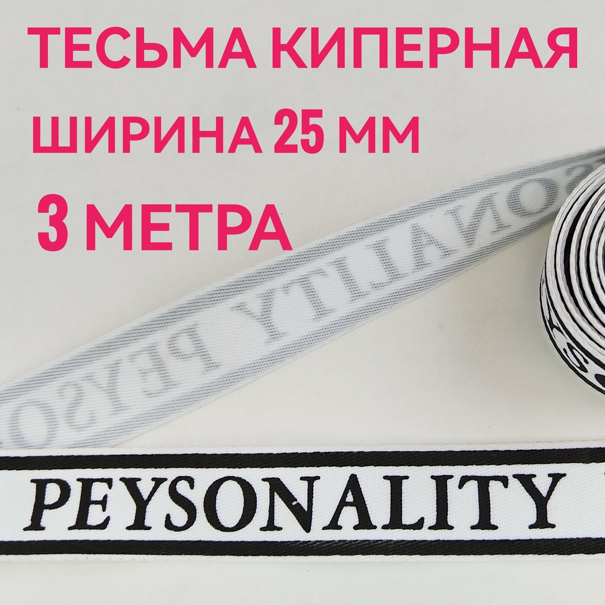 Отзывы на Тесьма /лента киперная принт PEYSONALITY черный на белом декоративная лампасная ш.2.5 см, в упаковке 3 м, для шитья, творчества и рукоделия.