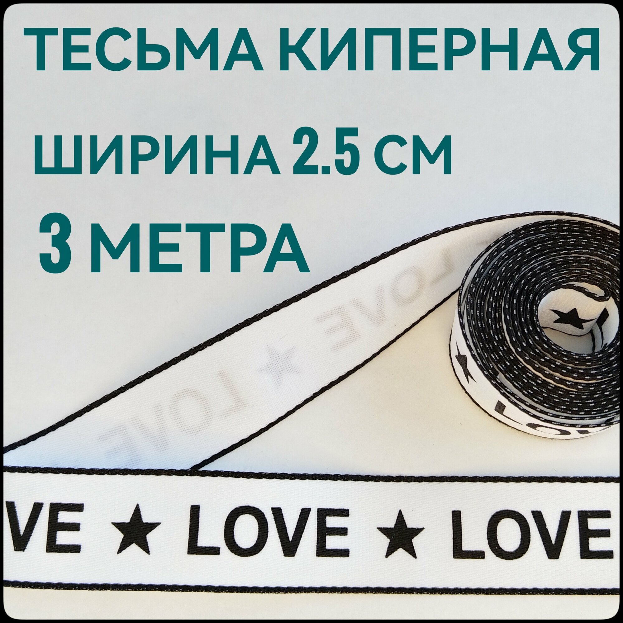 Отзывы на Тесьма /лента киперная принт LOVE чёрный на белом декоративная лампасная ш.2.5 см, в упаковке 3 м, для шитья, творчества и рукоделия.