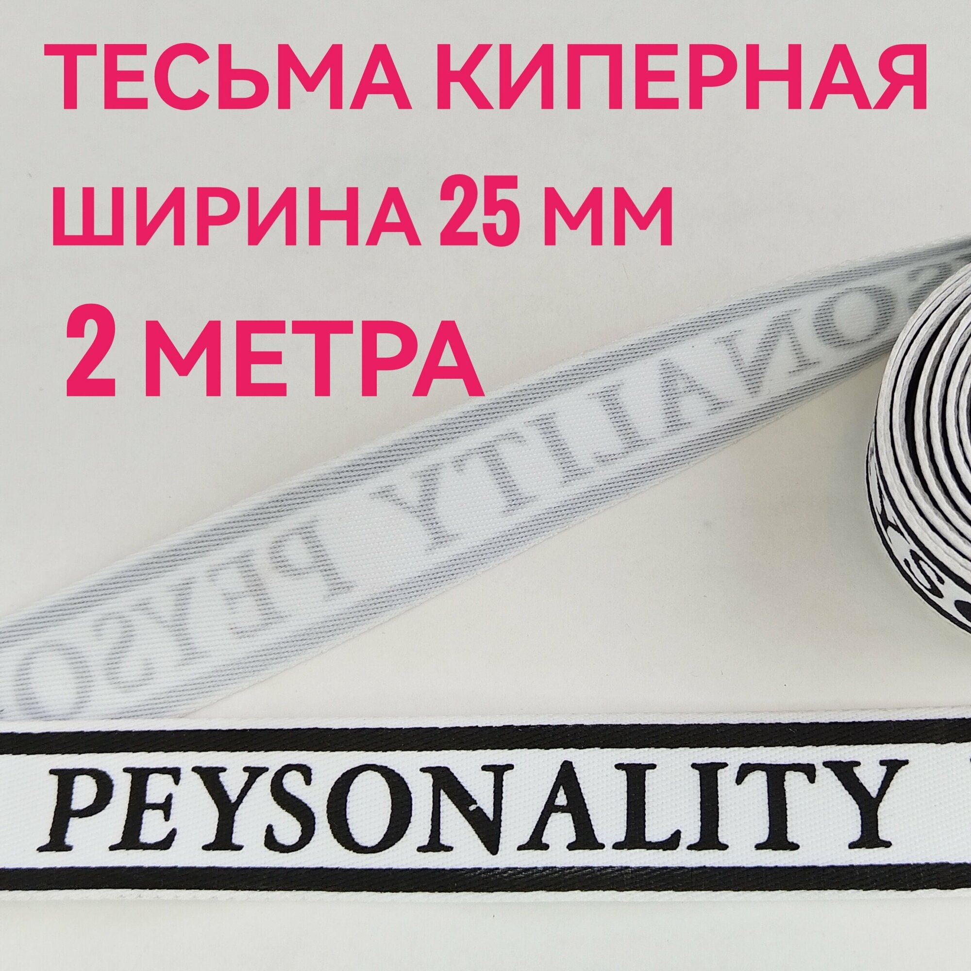 Отзывы на Тесьма /лента киперная принт PEYSONALITY черный на белом декоративная лампасная ш.2.5 см, в упаковке 2 м, для шитья, творчества и рукоделия.
