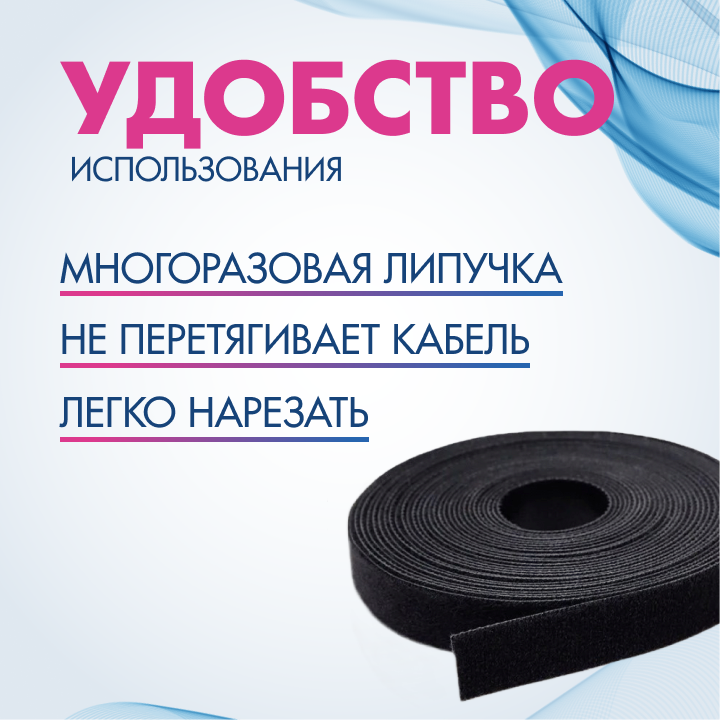 Отзывы на Органайзер для проводов лента липучка (длина 3 метра / ширина 1,5 см)