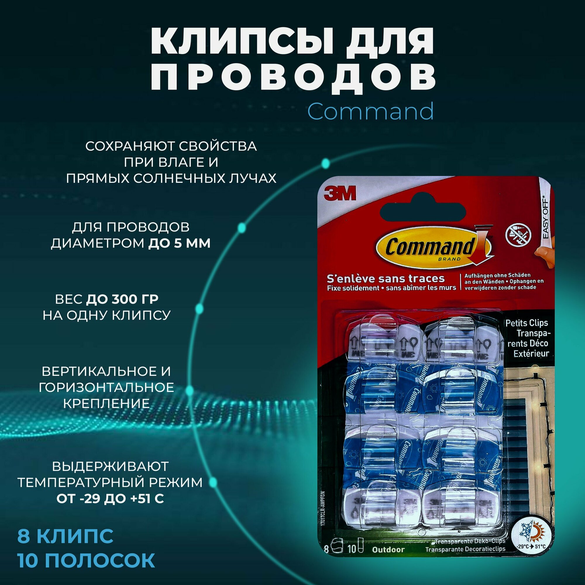 Клипса для проводов для улицы Command 17017CLRAW, 8шт/1уп информация: