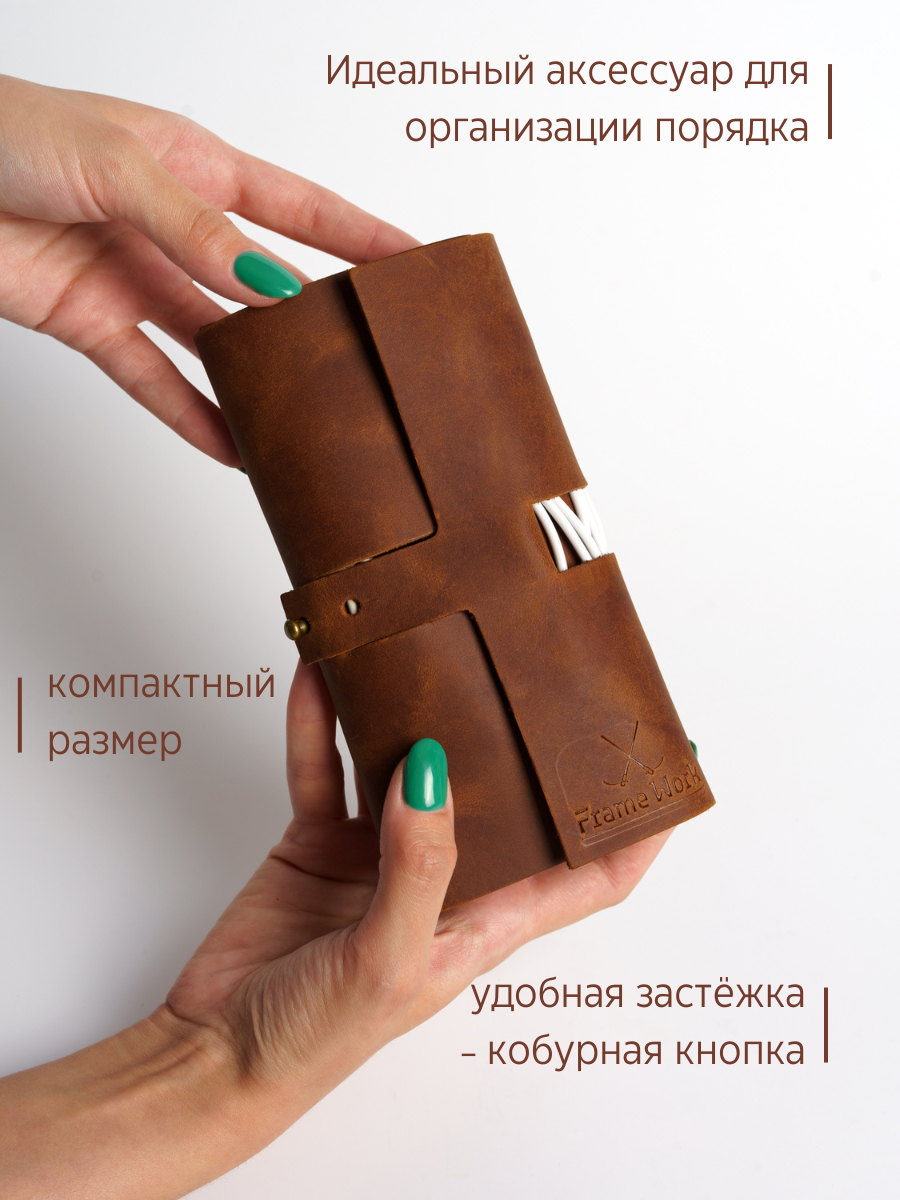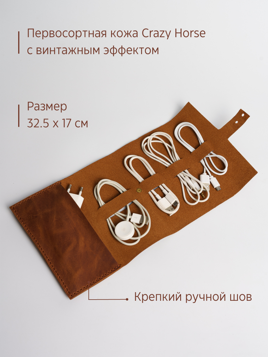 Органайзер для кабелей из натуральной кожи. Скрутка для проводов ручной работы. Цвет - виски информация: