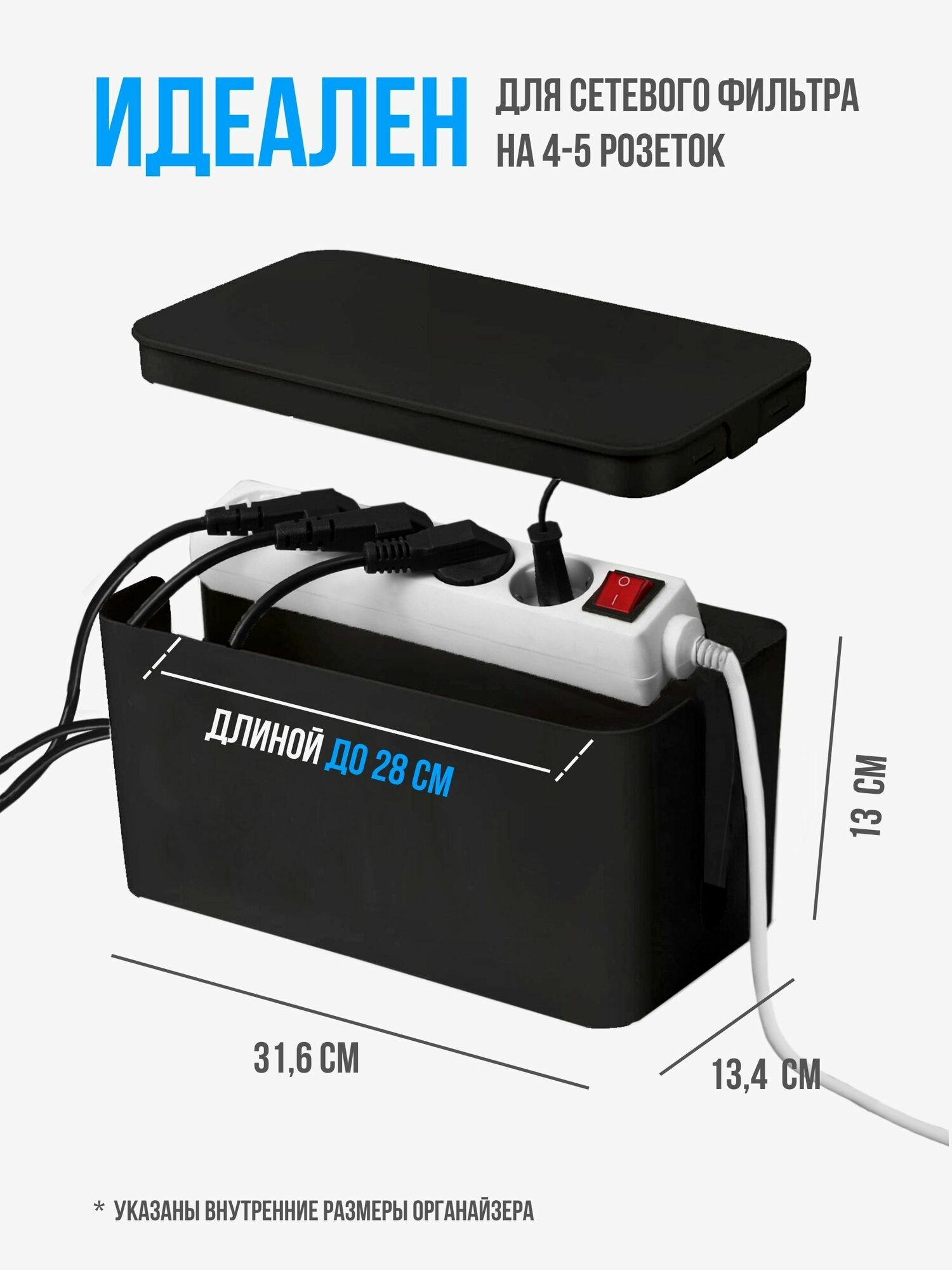 Коробка, органайзер для проводов, средний (32х13,5х13), черный, короб для маскировки сетевых кабелей и шнуров для зарядки информация: