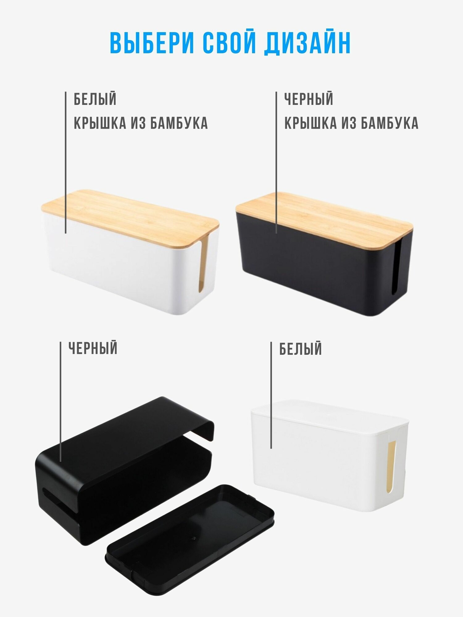 Коробка, органайзер для проводов большой (41х15,6х13,5), черный, бамбуковая крышка, короб для маскировки сетевых кабелей и шнуров для зарядки 1 980 ₽