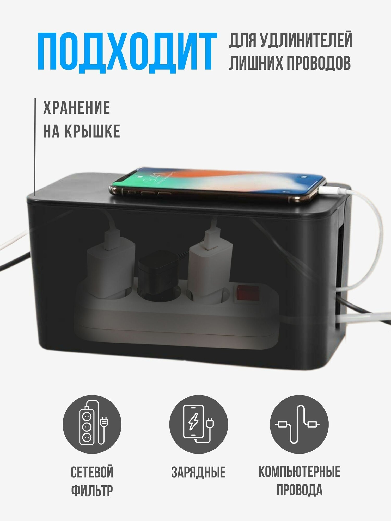 Коробка, Органайзер для проводов, малый (23,5х11,5х12), черный, короб для маскировки сетевых кабелей и шнуров для зарядки информация: