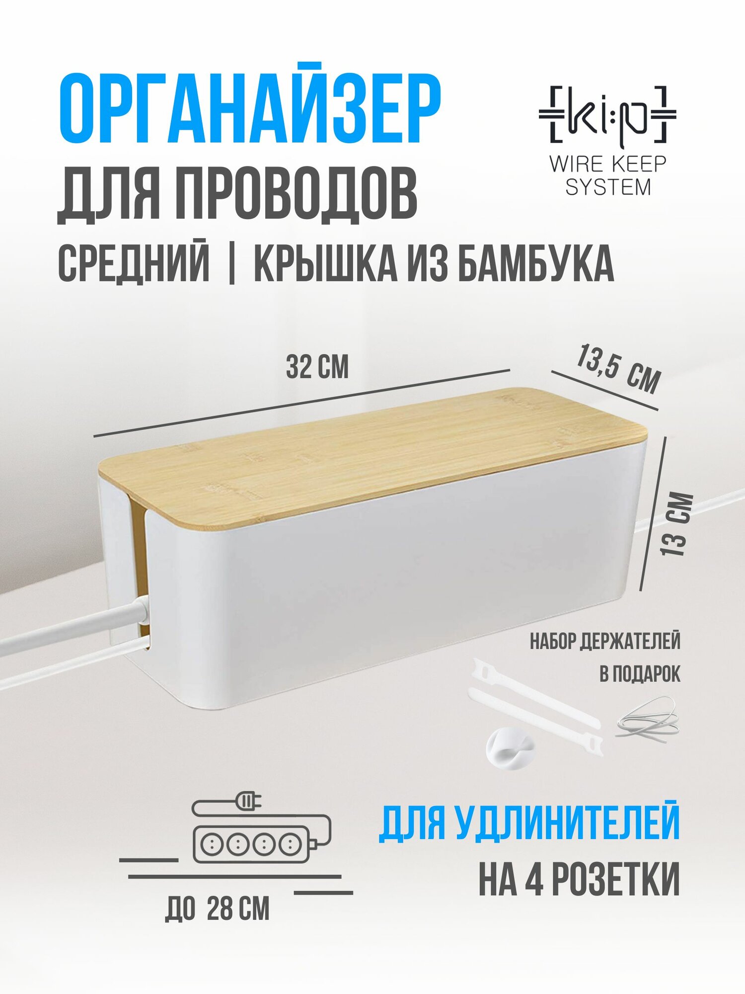 Отзывы на Коробка, органайзер для проводов, средний (32х13,5х13) белый бамбуковая крышка, короб для маскировки сетевых кабелей, шнуров и зарядки