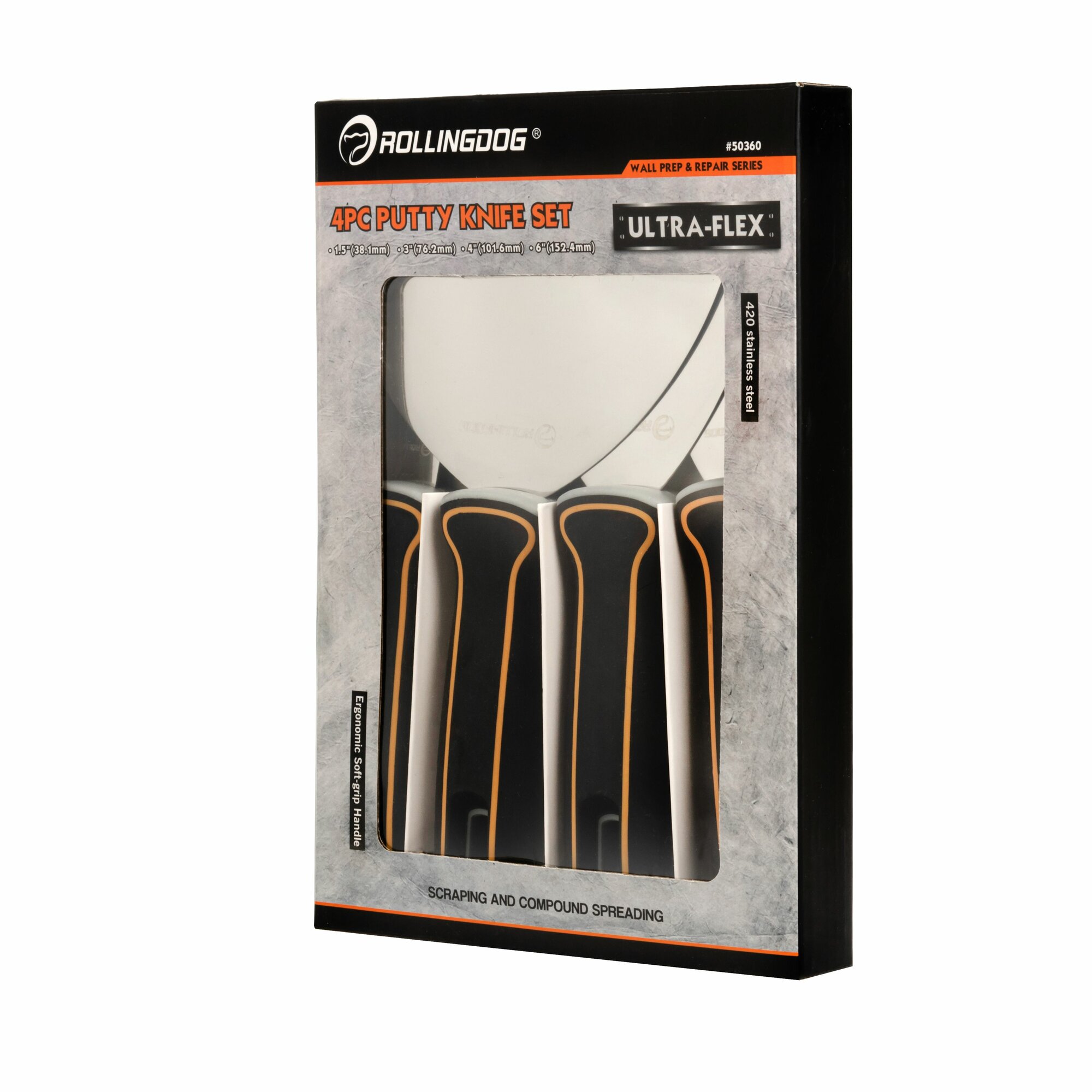 Набор шпателей Rollingdog Ultra-Flex 1 3 4 6" (25 75 100 150мм), серия Professional, арт.50360 информация: