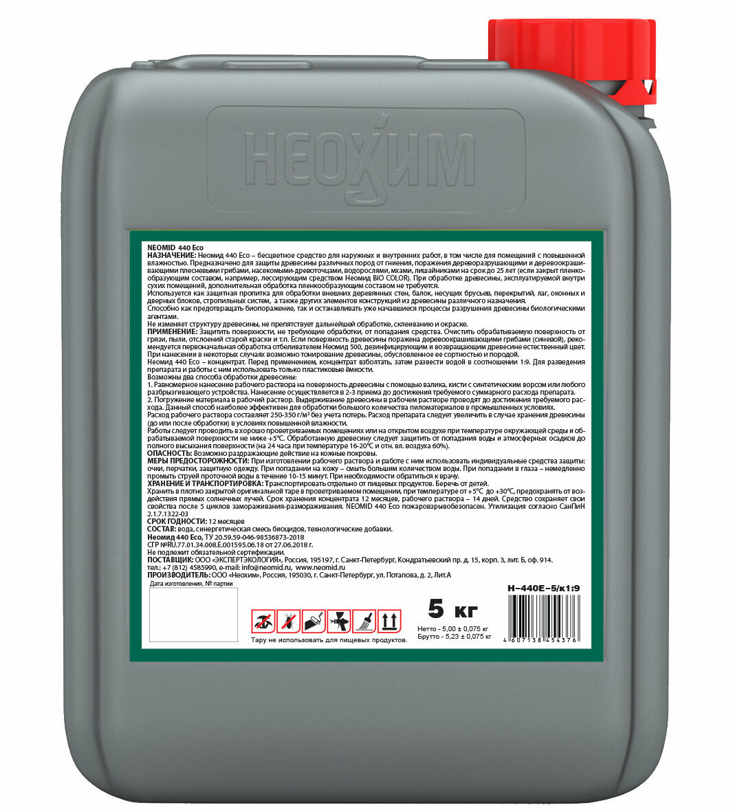 Строительный антисептик Neomid 440 концентрат 1:9 б/ц глубокого проникновения 5 кг информация: