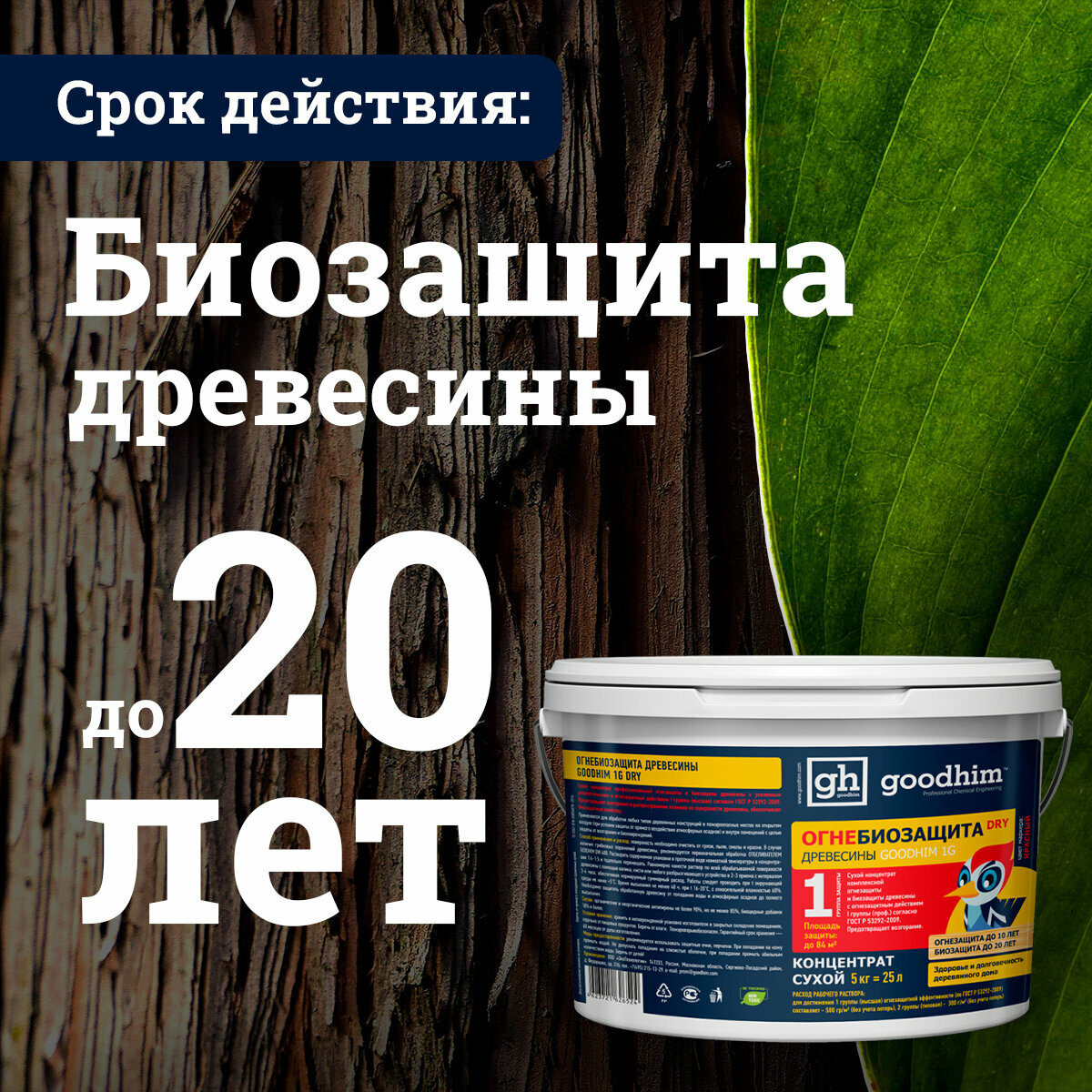 Огнебиозащита 1 группы (Сухой концентрат) GOODHIM 1G DRY, 5кг (вед.) 1472 информация: