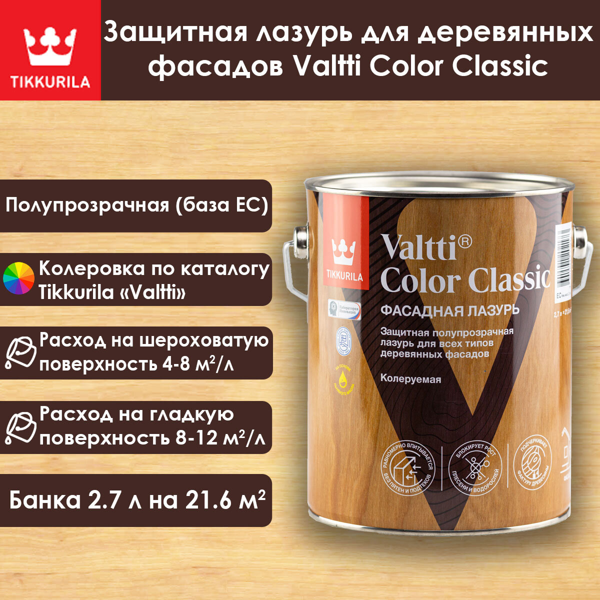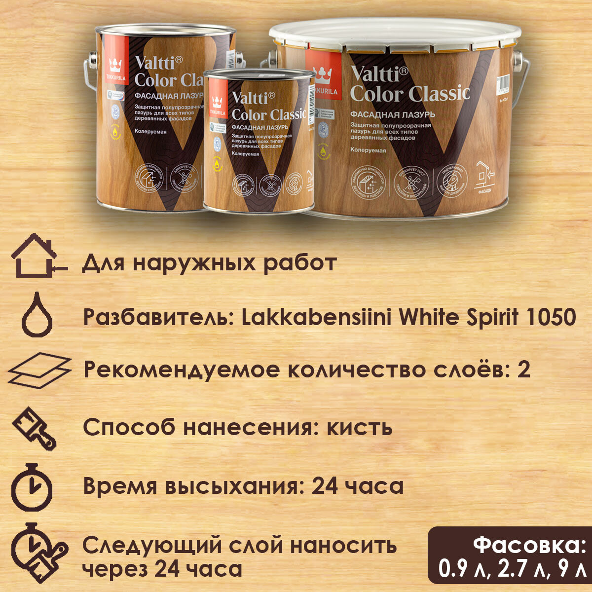 Лазурь Tikkurila Valtti Color Classic для деревянных фасадов 2.7 л информация:
