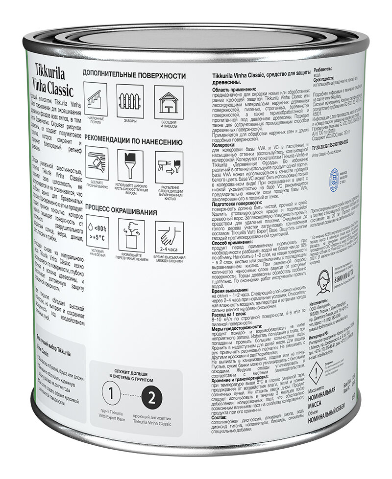Кроющий антисептик для деревянных фасадов Tikkurila Vinha Classic (0,9л) 2683 Vuoksi 2 057 ₽