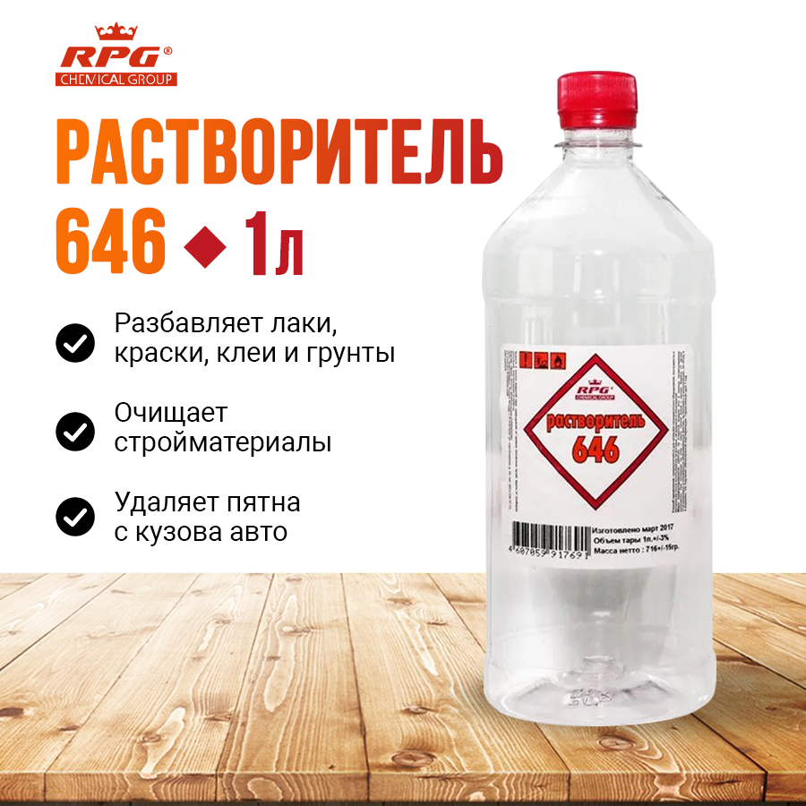 10 цен на Растворитель № 646 RPG, разбавитель эмалей, краски, автоэмали, ЛКМ , для строительных работ 1л канистра