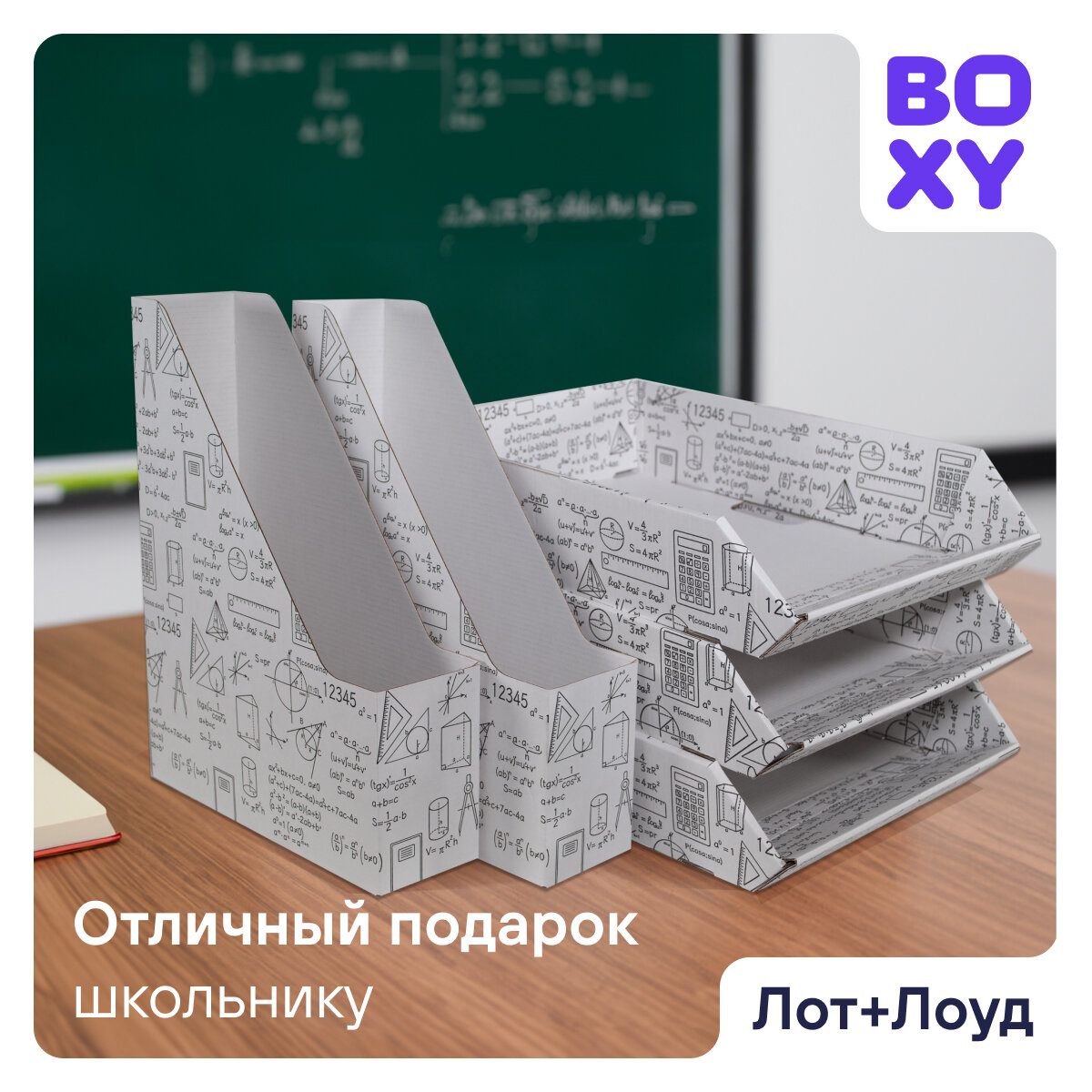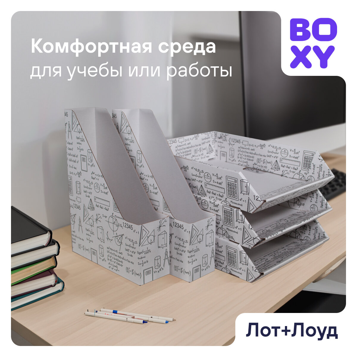 Набор органайзеров для бумаг, картонный BOXY ЛОТ&ЛОУД Формулы: вертикальный лоток 227х75х300 мм 2 шт; горизонтальный лоток 350х240х75 мм 3 шт