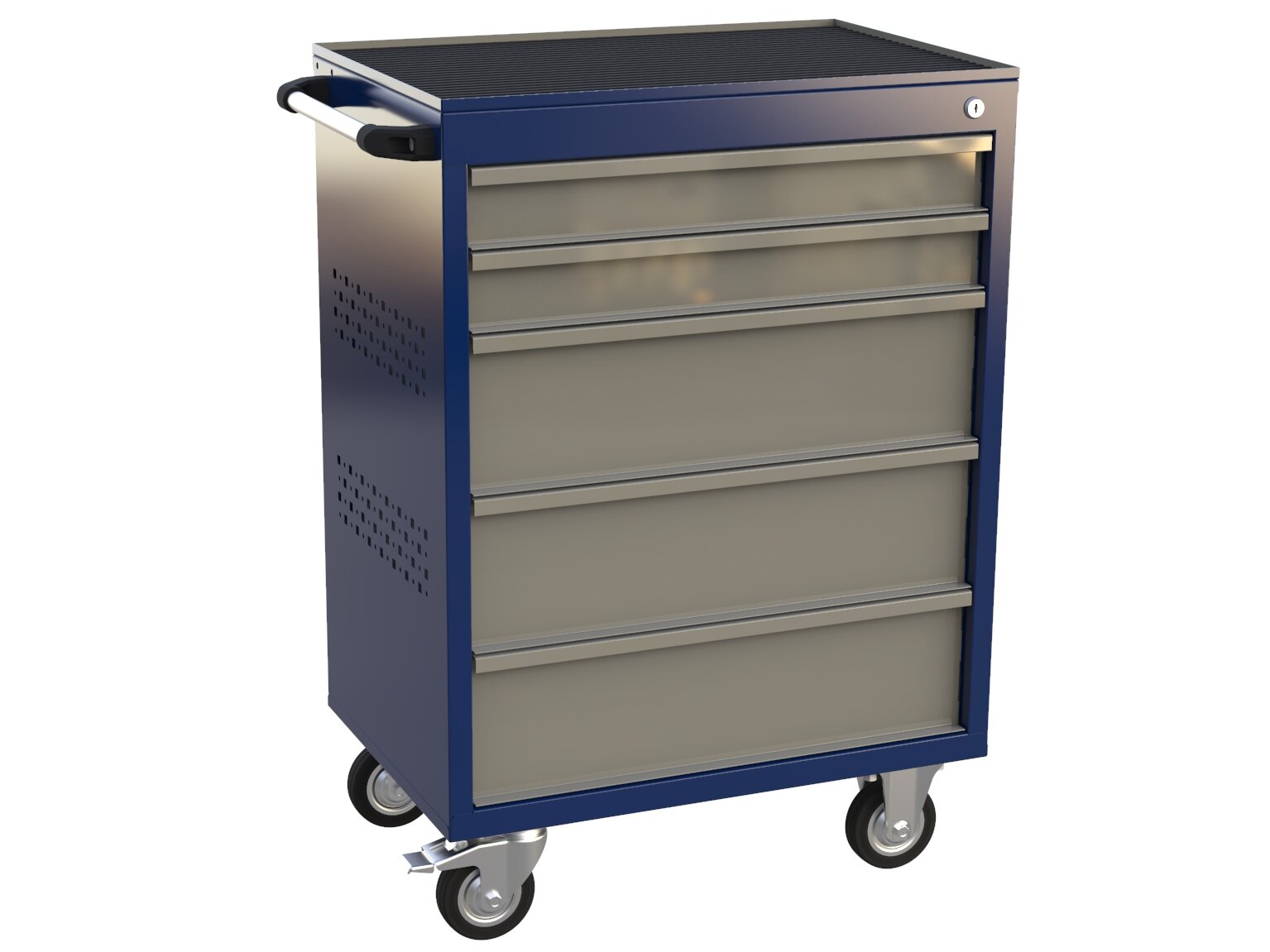 Тележка инструментальная с 5 ящиками, перфорированные боковые стенки, синяя с серыми ящиками, GRANIT-L5