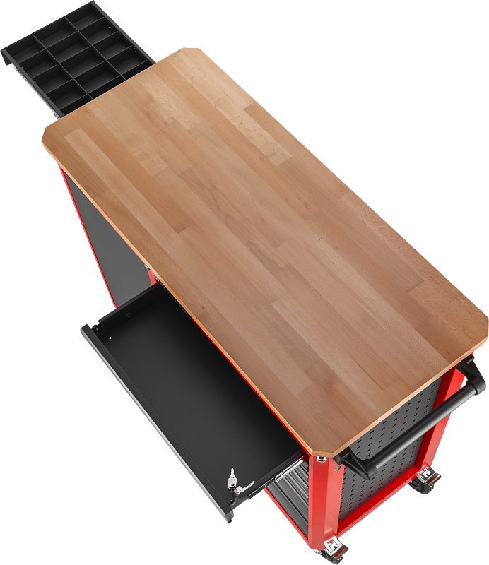 10 цен на Тележка инструментальная (верстак) серии WORKBENCH без инструментов, деревянная столешница, 7 выдвижных ящиков, отделение с распашной дверцей, цвет красно-черный, IZELTAS, 8247321007/13000002480