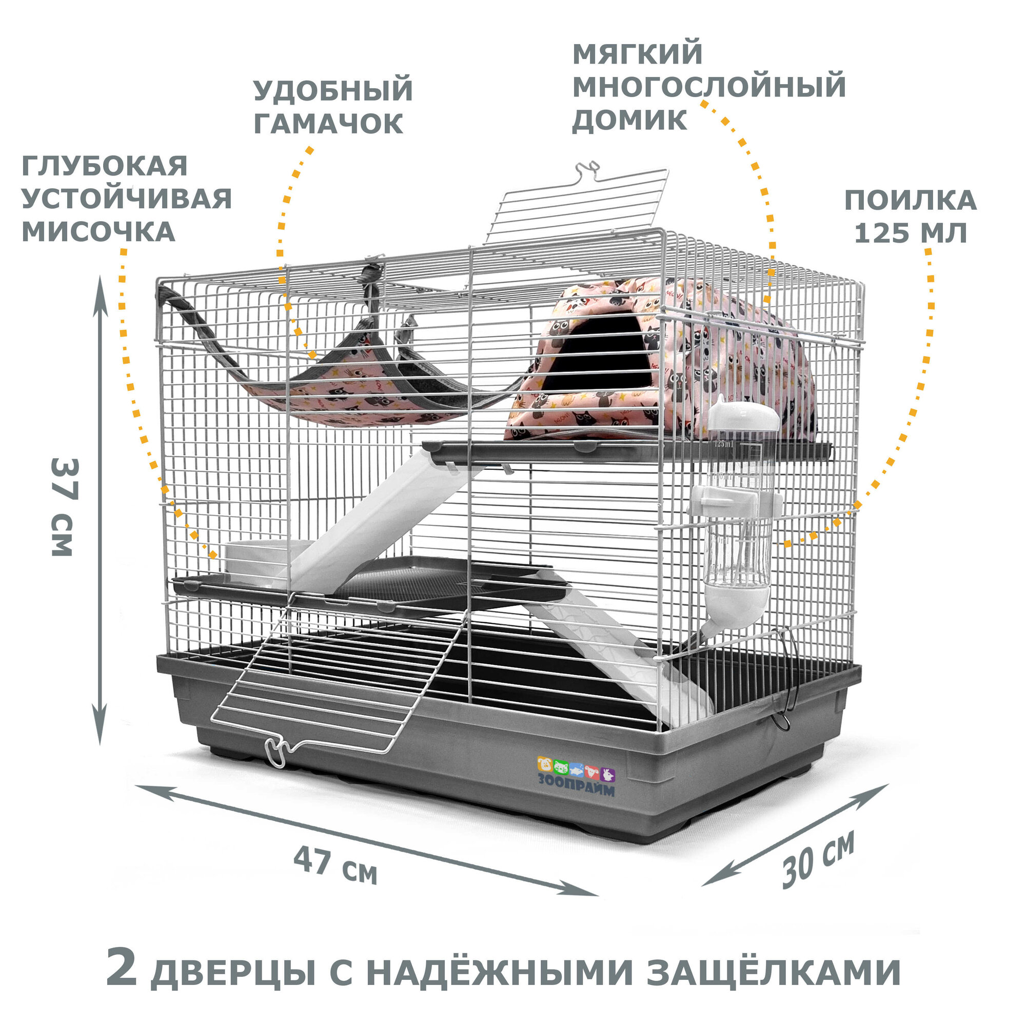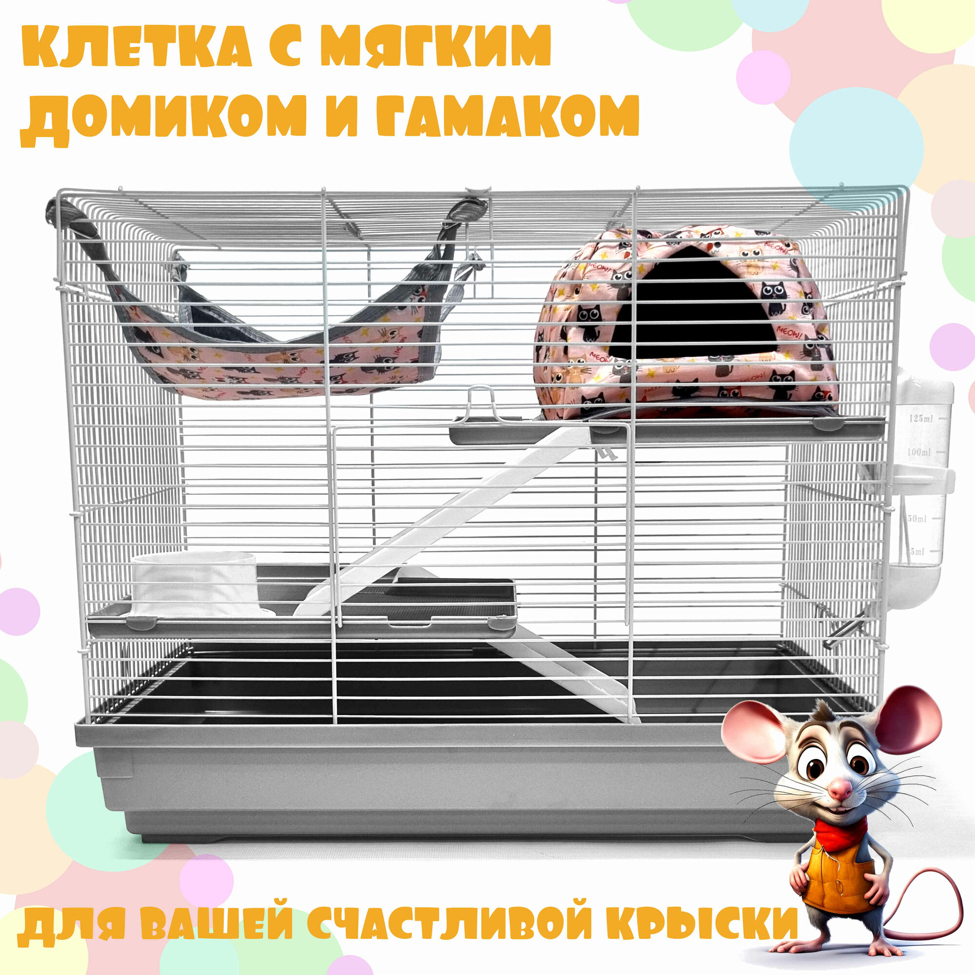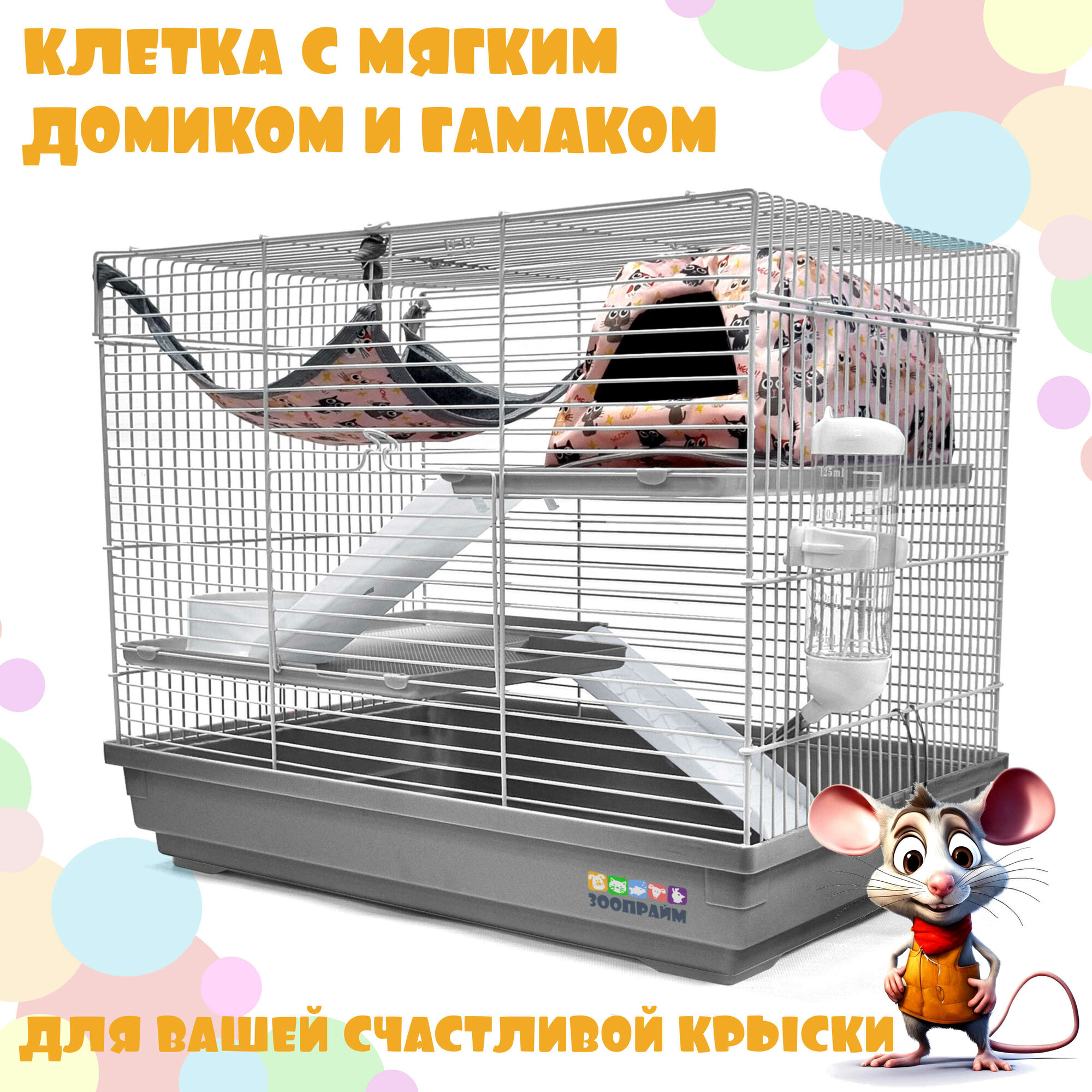 Клетка для грызунов, N1, Клетка для крысы c комплектом: гамак и мягкий домик. Высота 37 см. ширина 47 см. глубина 30 см. арт. 5134РК информация: