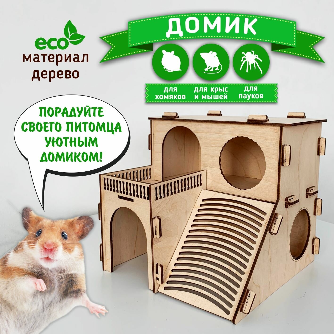Деревянный домик Хомяка Крыс Грызунов информация: