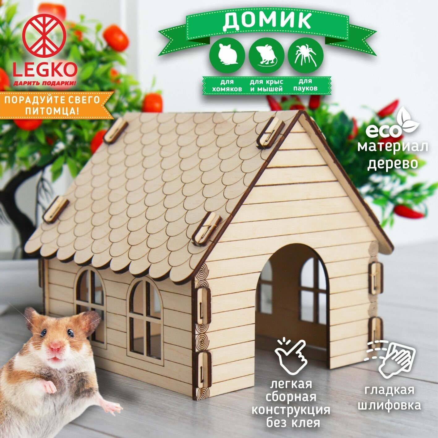 Деревянный домик для Хомяка Крыс Грызунов. информация: