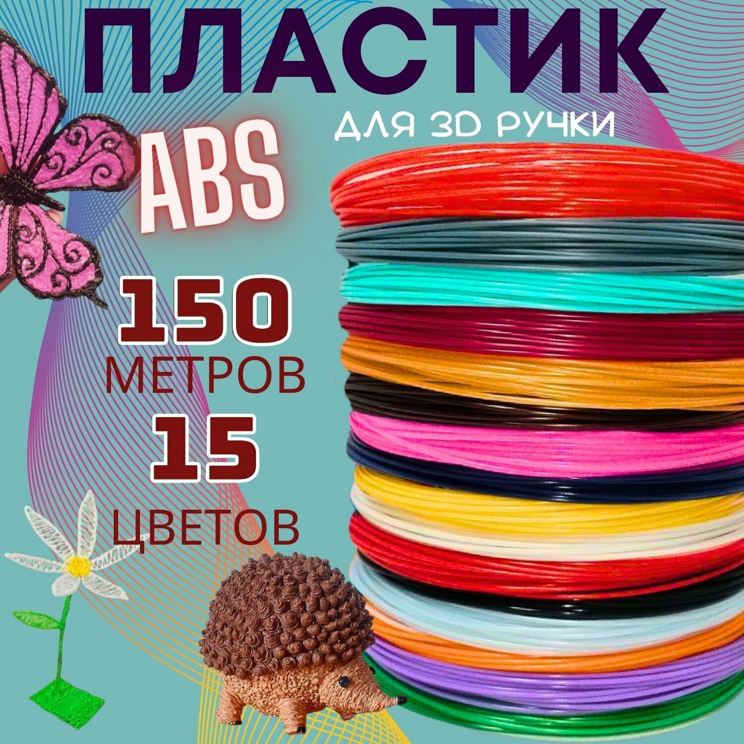Отзывы на ABS пластик для 3D ручки, "U3Fun". 15 разных цветов, 150 метров в наборе
