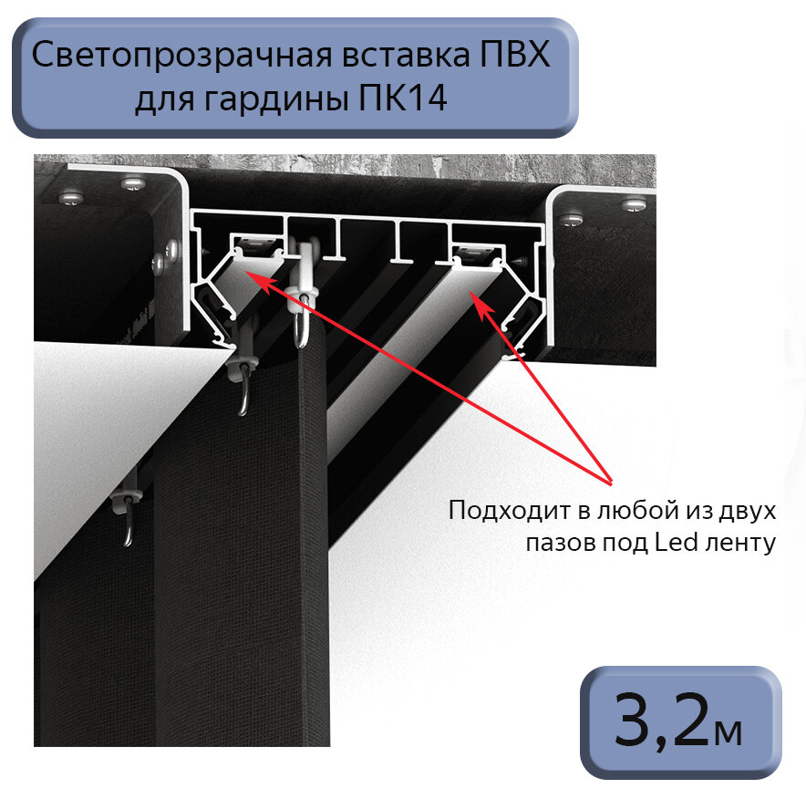 Вставка светопрозрачная в гардину ПК14 для натяжного потолка, 3,2м информация: