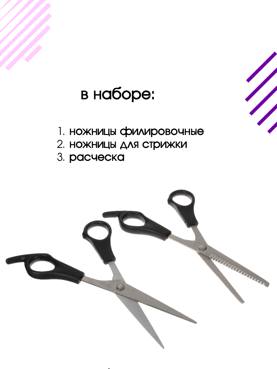 | Подробная комплектация | ножницы 2 шт + расческа |