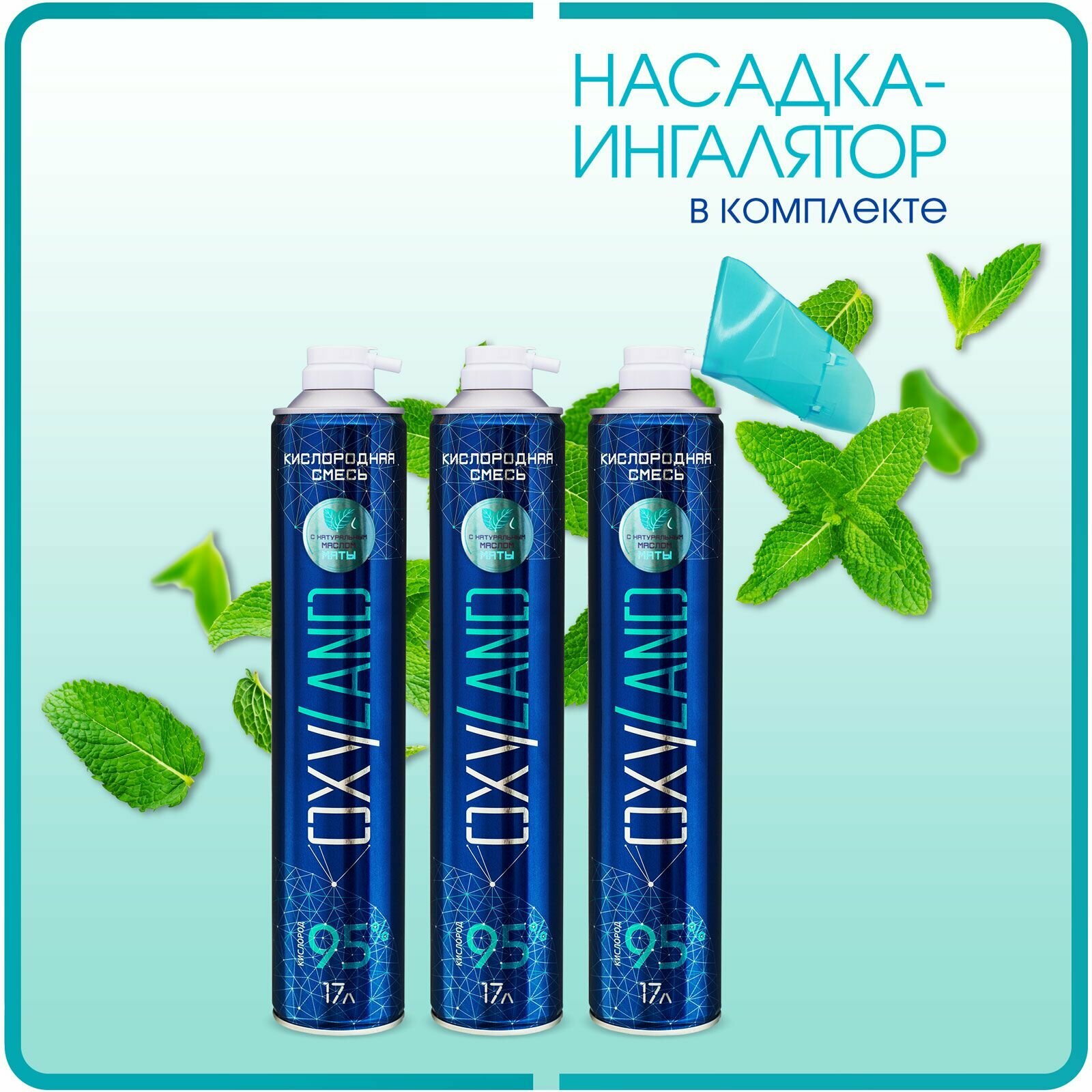 10 цен на Кислородный баллончик Oxyland 17л с маслом мяты 3 шт + насадка-ингалятор