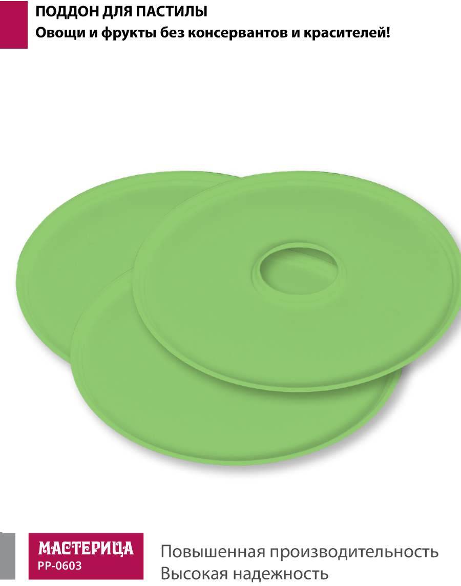 Отзывы на Поддон для пастилы Мастерица PР-0603 зеленый 3шт+лопатка универс. диаметром 33.5см