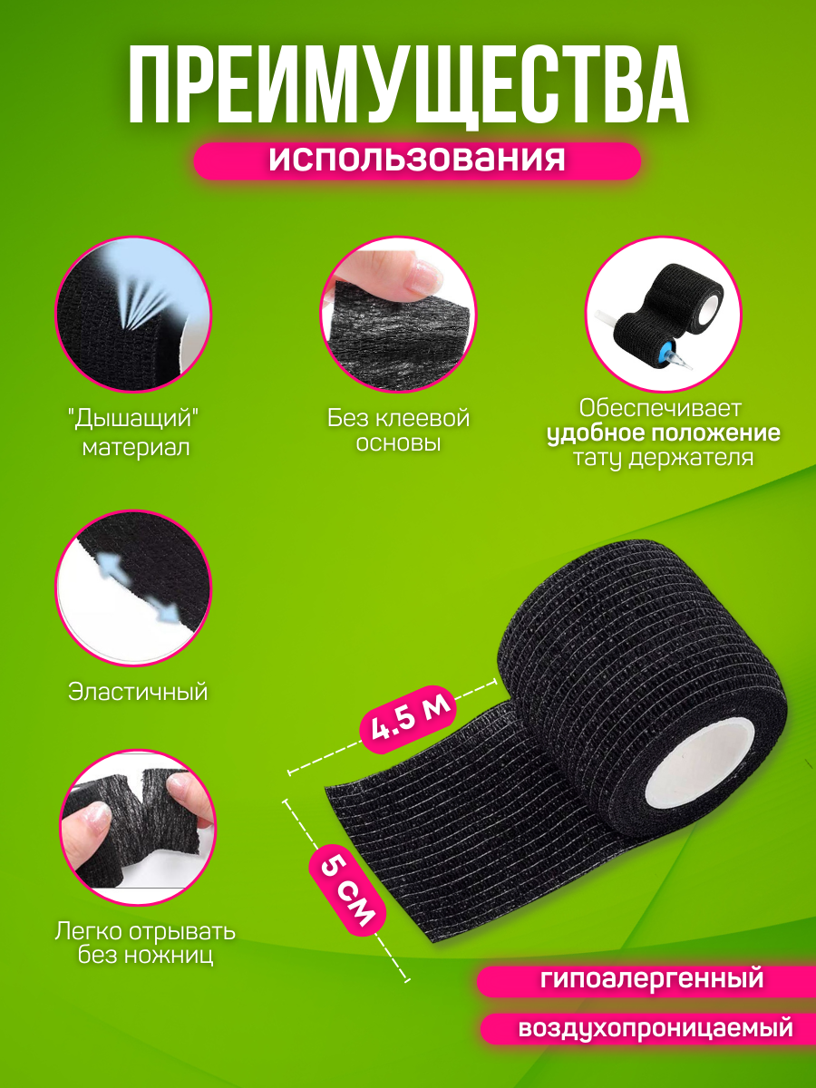 Отзывы на Бандажный бинт самофиксирующийся эластичный когезивный для тату черный - 3 шт