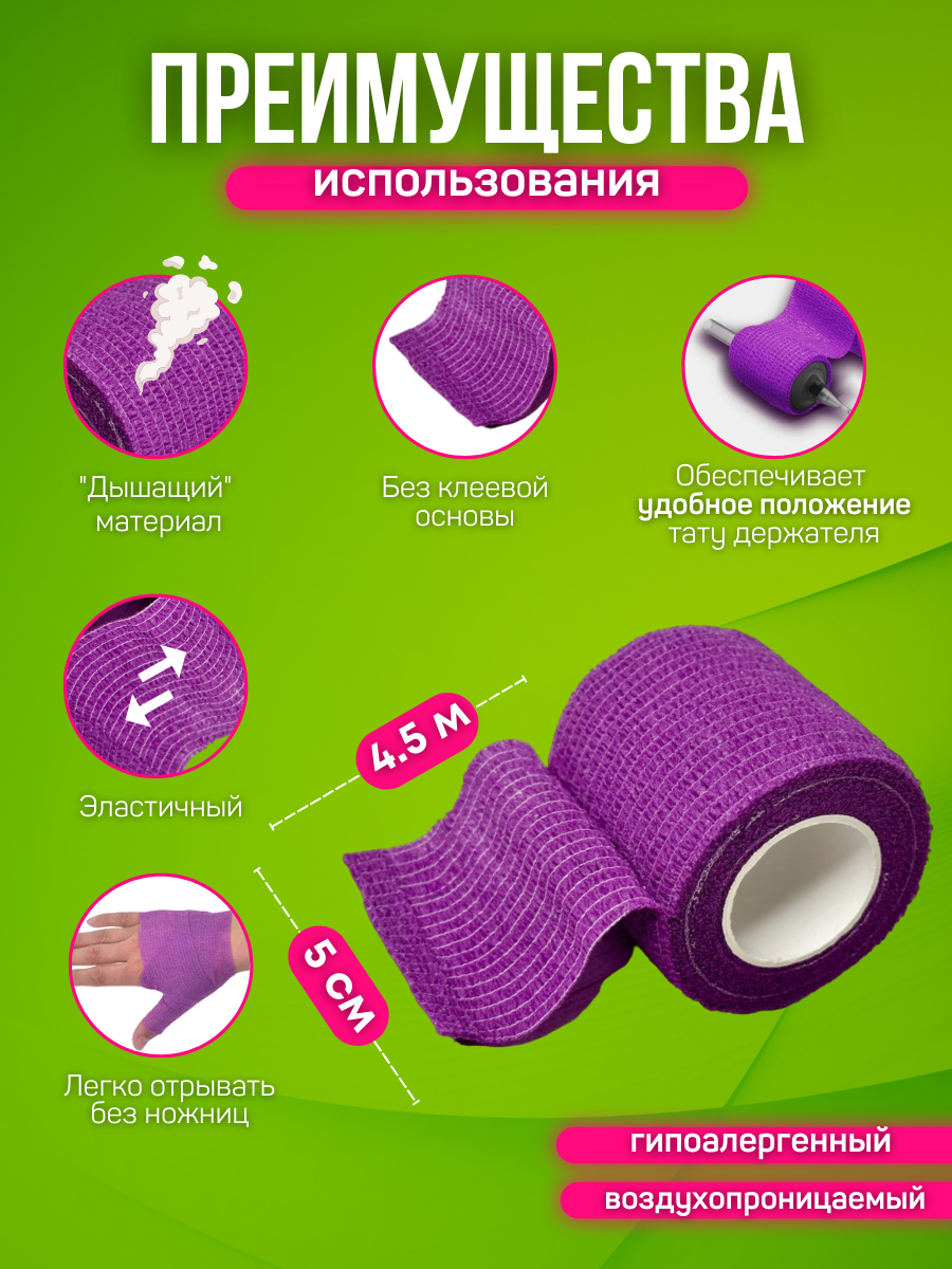 Отзывы на Бандажный бинт самофиксирующийся эластичный когезивный для тату фиолетовый - 3 шт