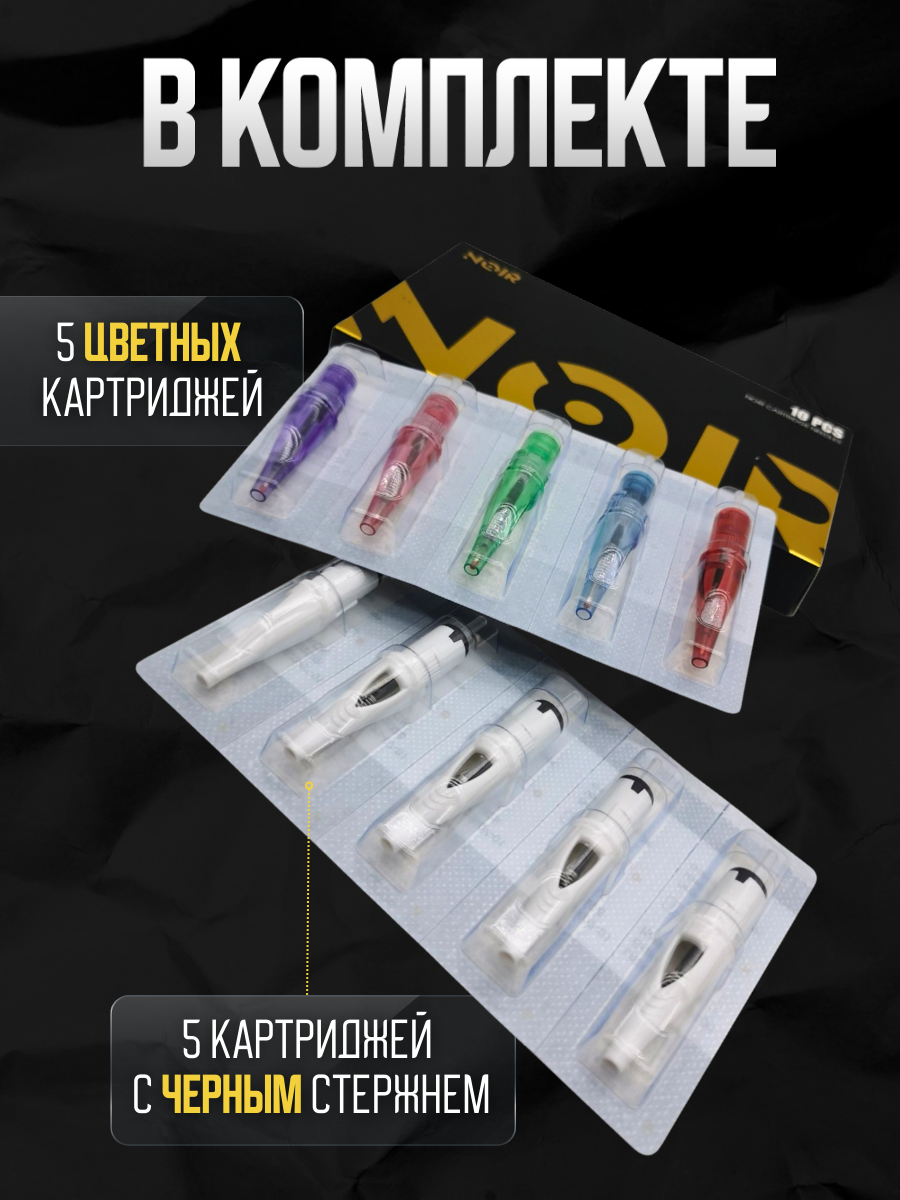 | Комплектация | Картриджи ручки для тату машинки NOIR - 10 шт/уп. |