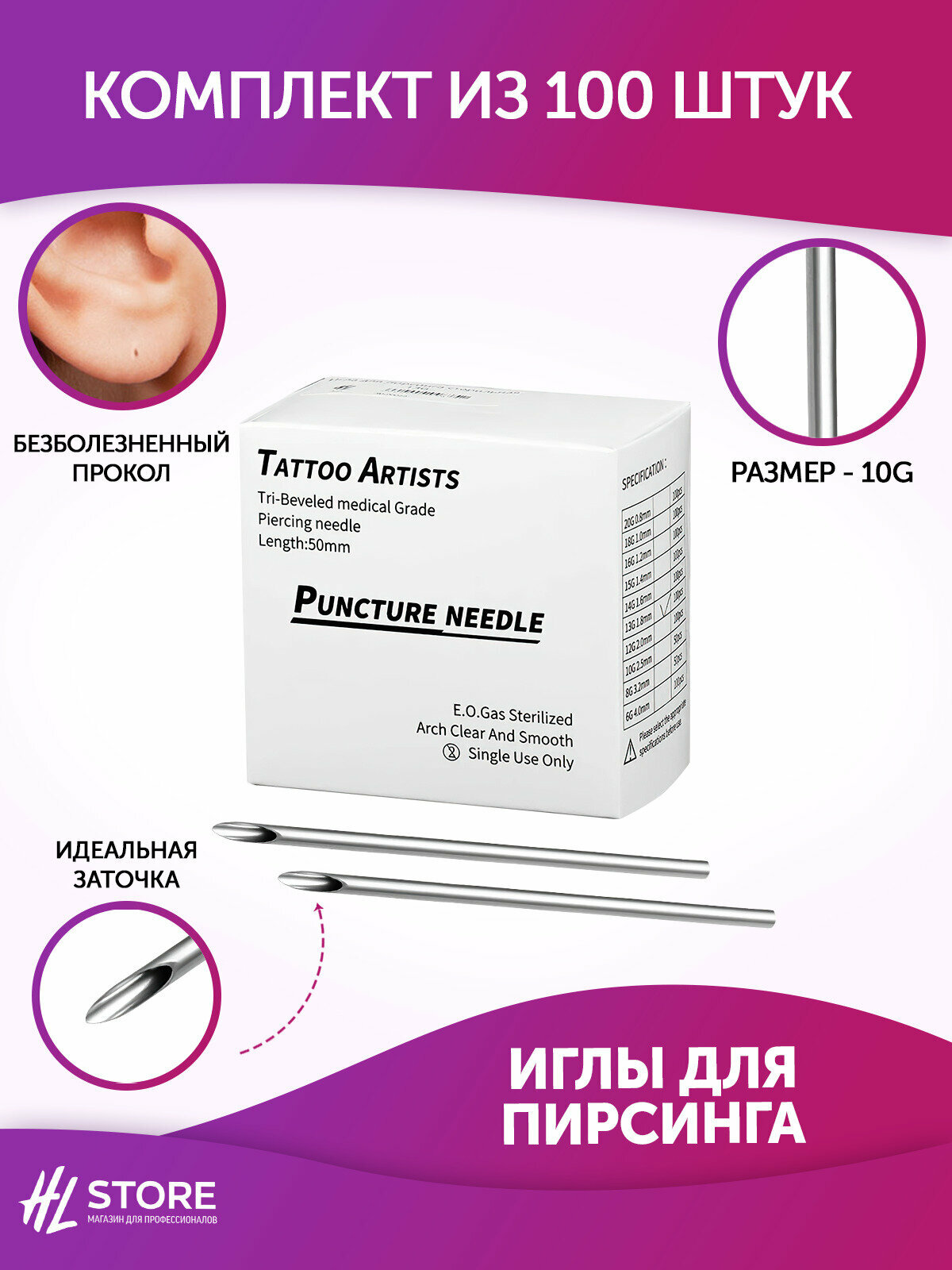 Иглы для пирсинга стерильные 10G - 100 шт/уп информация: