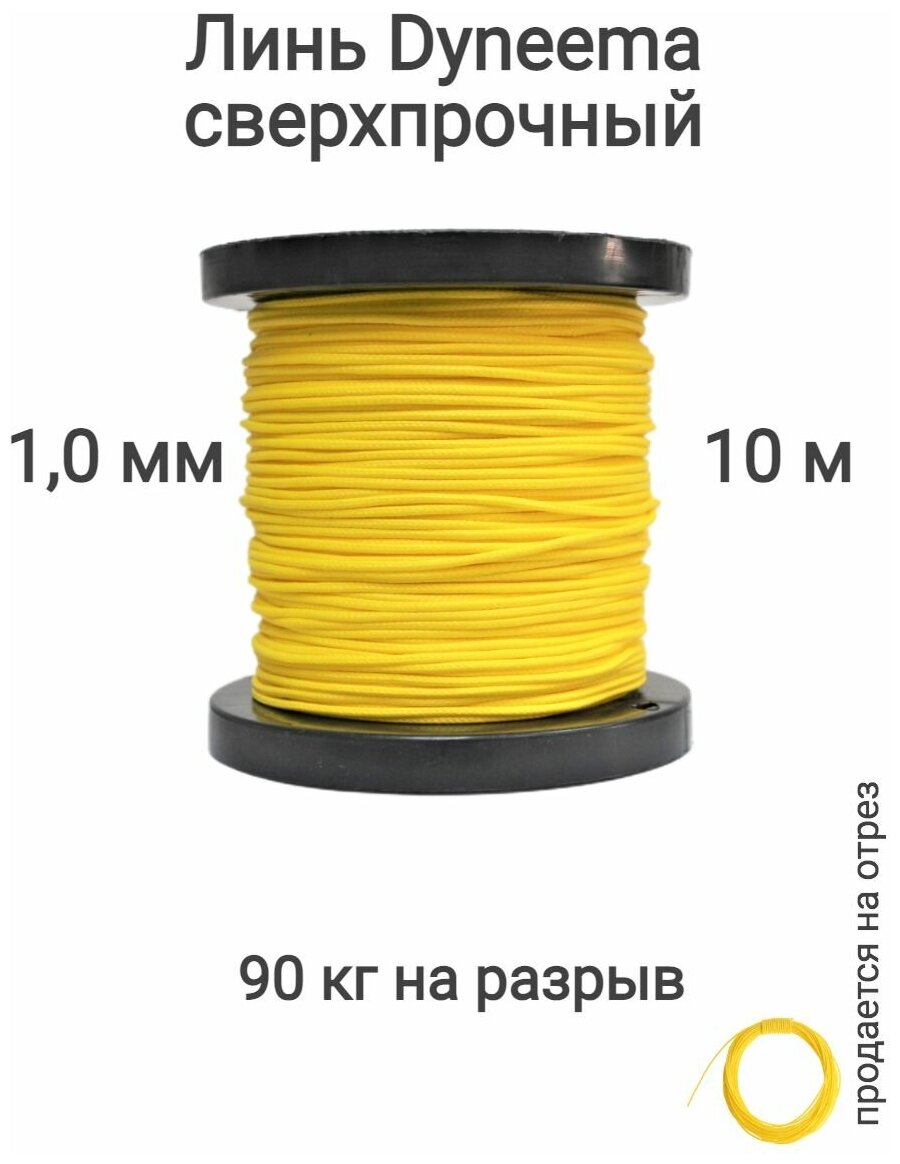 10 цен на Линь Dyneema, для подводного ружья, охоты, желтый 1.0 мм нагрузка 90 кг длина 10 метров. Narwhal