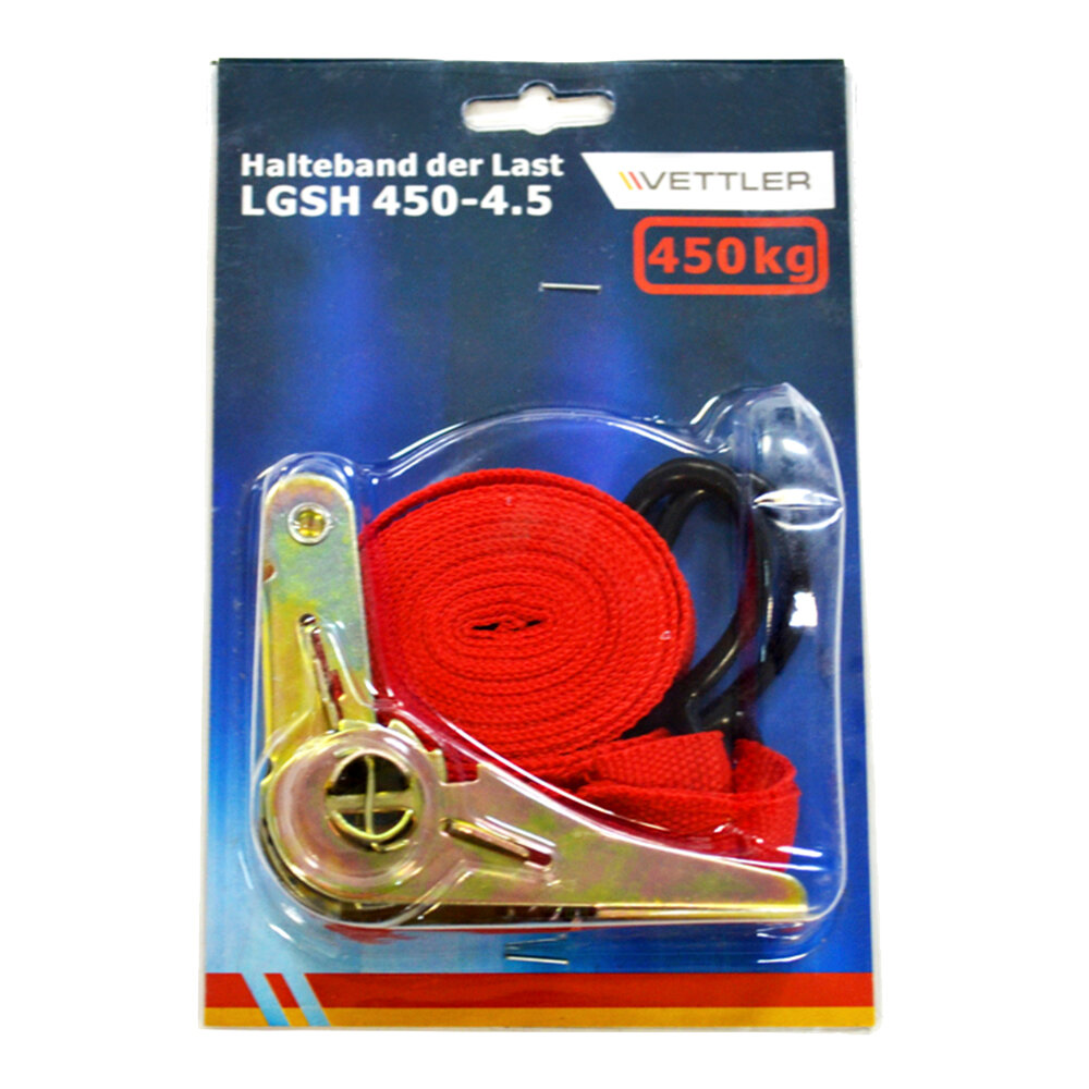 | Подробная комплектация | Стяжка крепления груза крюк 4,5м х 25мм 450кг VETTLER LGSH45045 - 1 шт. |