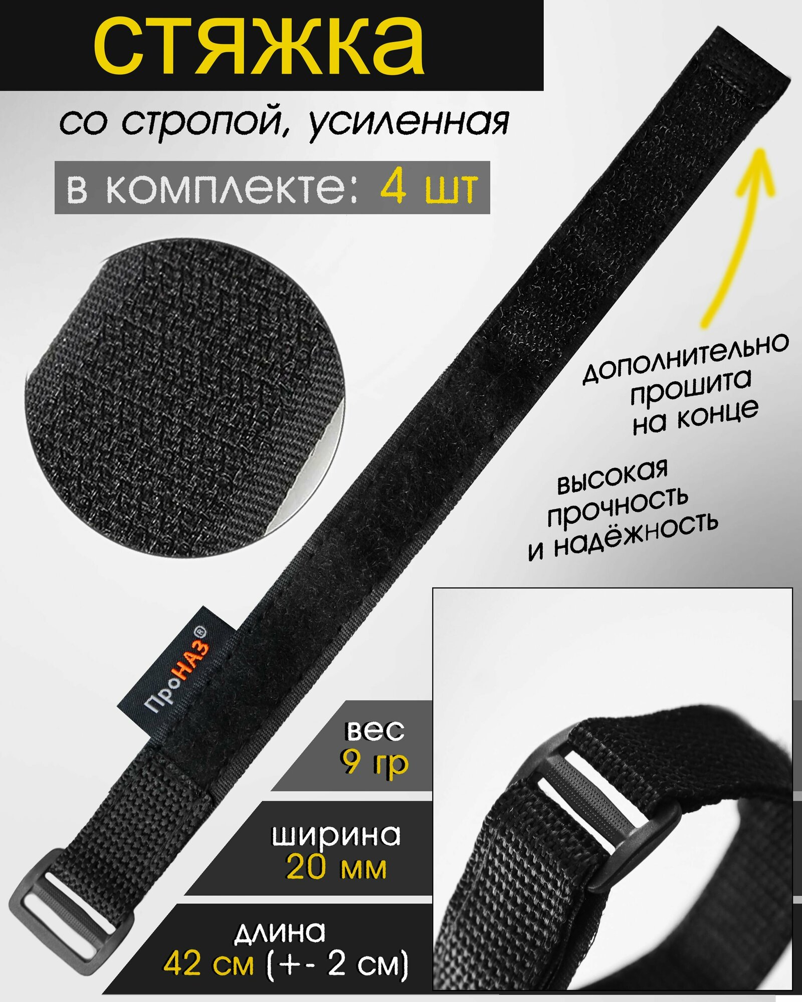 Стяжка - стропа с липучкой нейлоновая усиленная для крепления снаряжения / Ремешок для фиксации груза и экипировки / Чёрная 20х420мм 4 шт информация: