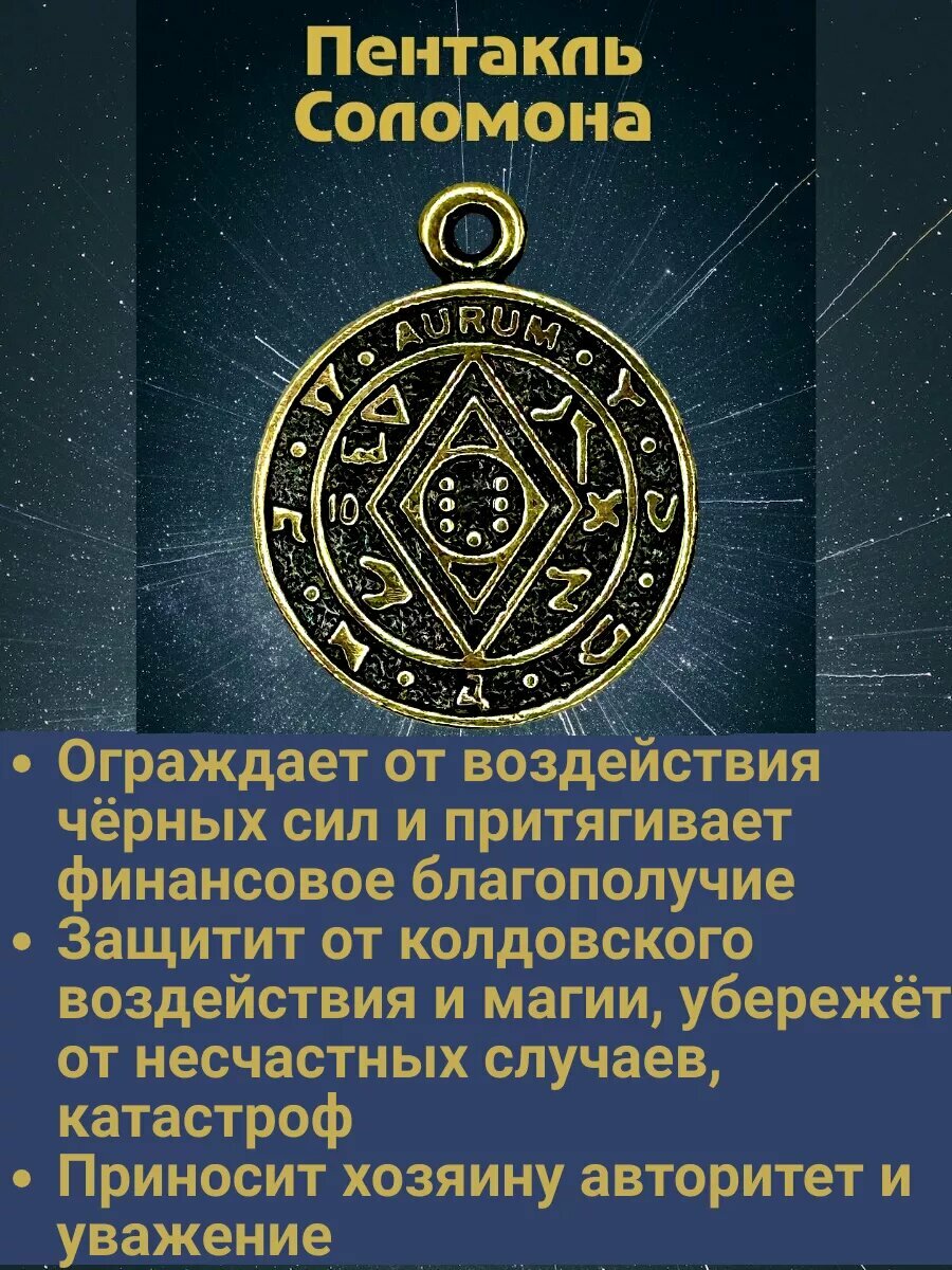 Мы выбрали 10 лучших цен на Амулет "Пентакль Соломона". Перед тем как купить Амулет "Пентакль Соломона" посмотрите найденные предложения из Яндекс Маркета и других сайтов на основе XML фидов.