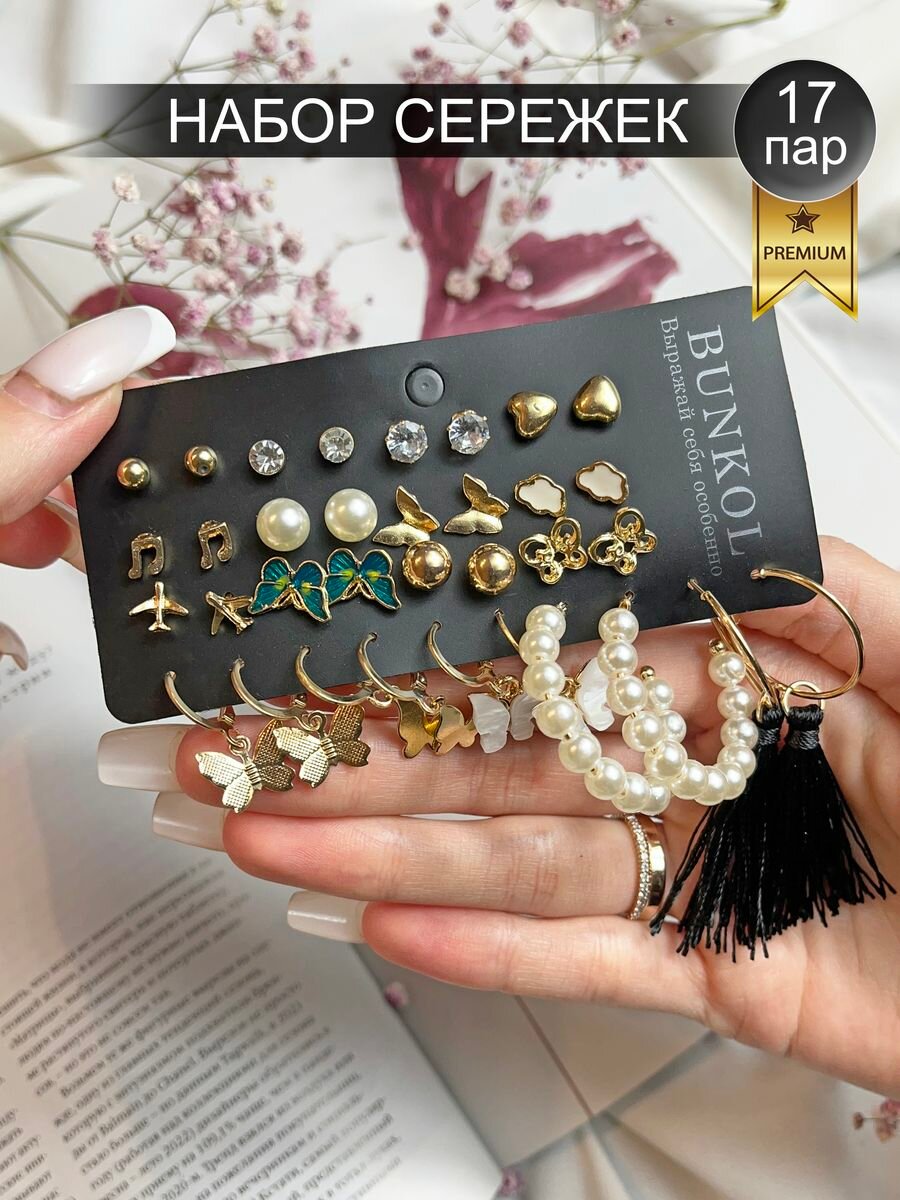 10 цен на Серьги бижутерия набор 17 пара пусеты
