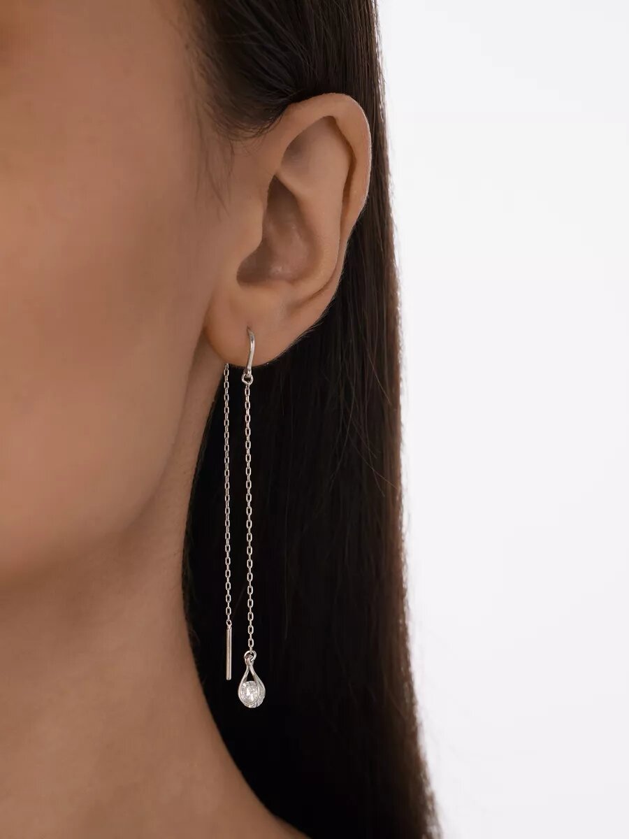 Моносерьга (одиночная) серебряная с фианитами арт. 21210624/9Полупара