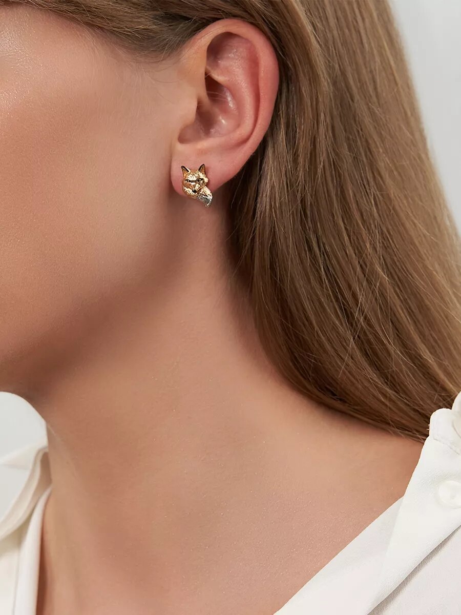 10 цен на Серьги серебряные в позолоте с эмалью Лиса арт. 20210532/9п