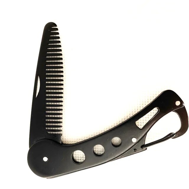 10 цен на Расческа для бороды складная с карабином, гребень для бороды металлический в чехле (Черный)