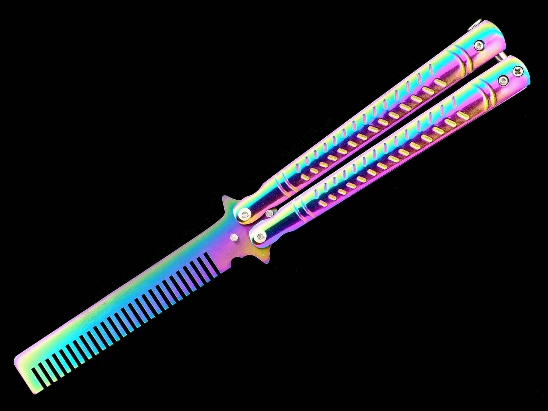 Нож бабочка расческа тренировочный для волос и бороды, складной, подарок ребенку, другу, мужу