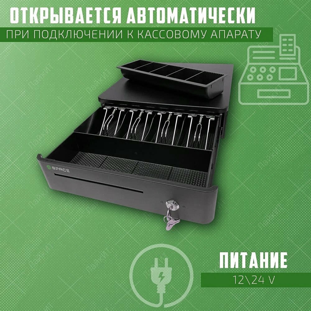 Денежный ящик Space BOX-335R, замок электромеханический, с подключением к кассе, черный информация: