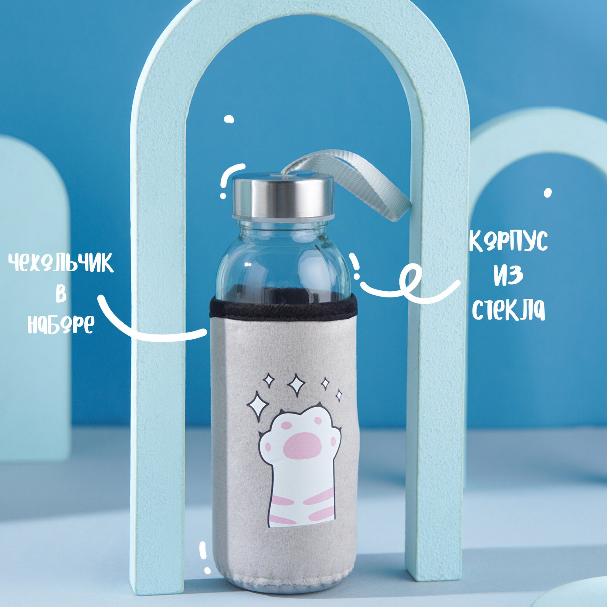 Отзывы на Бутылка для воды стеклянная в чехле «Лапки», 300 мл, h=17 см, цвет микс
