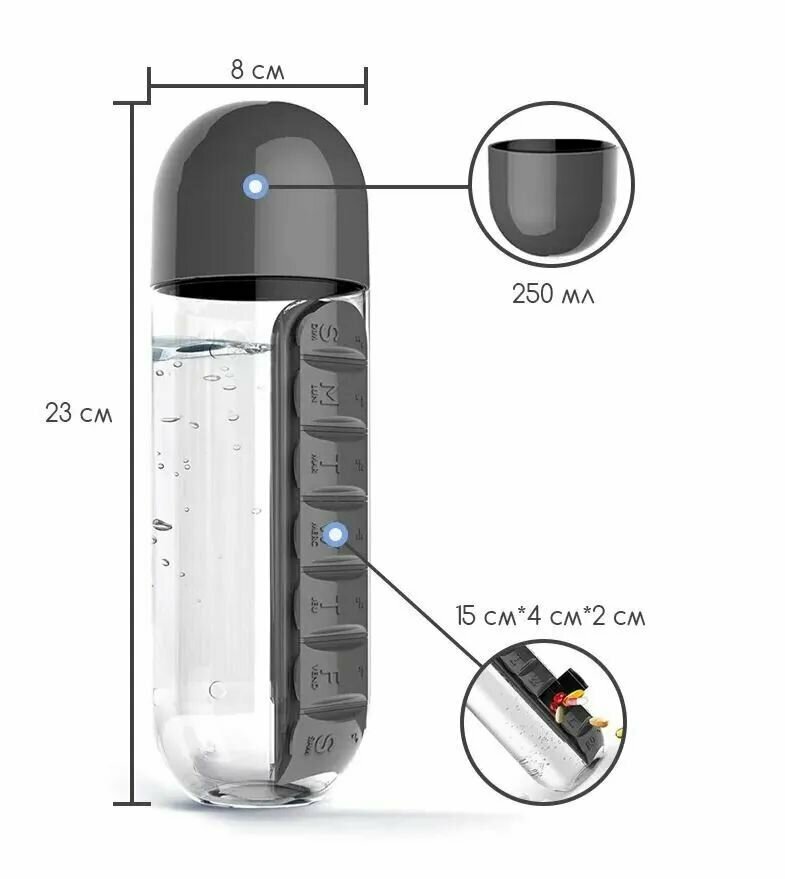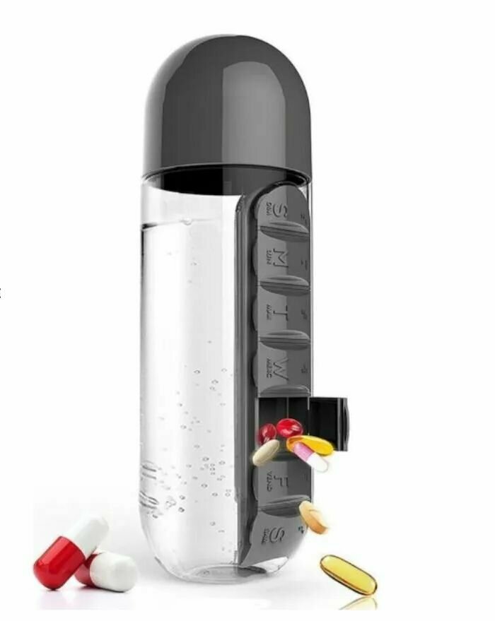 Отзывы на Бутылка-таблетница для воды / объем 700 мл / для таблеток / для вoды / на 7 дней / цвет